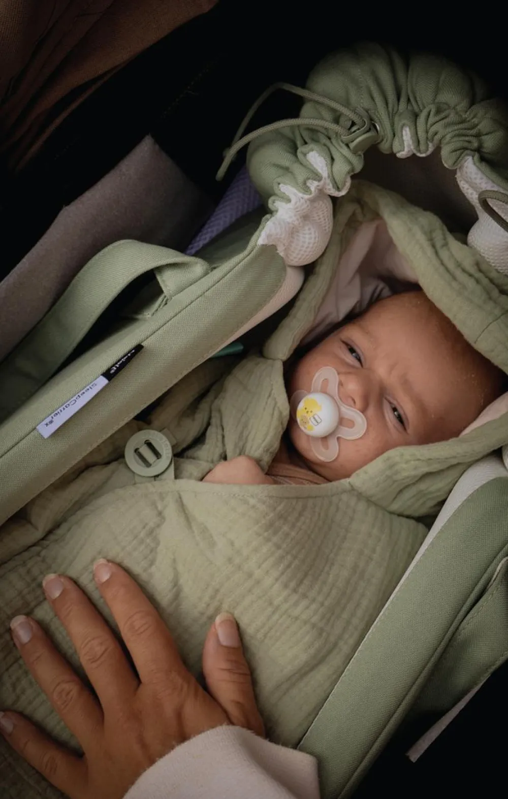 Najell barnevognsdragts wrap-around-design gør det nemt at få barnet ind og ud uden besværet med ben og arme. Med den justerbare bund kan I skabe en hyggelig, blød hule til forårs-, sommer- og efterårsdage.