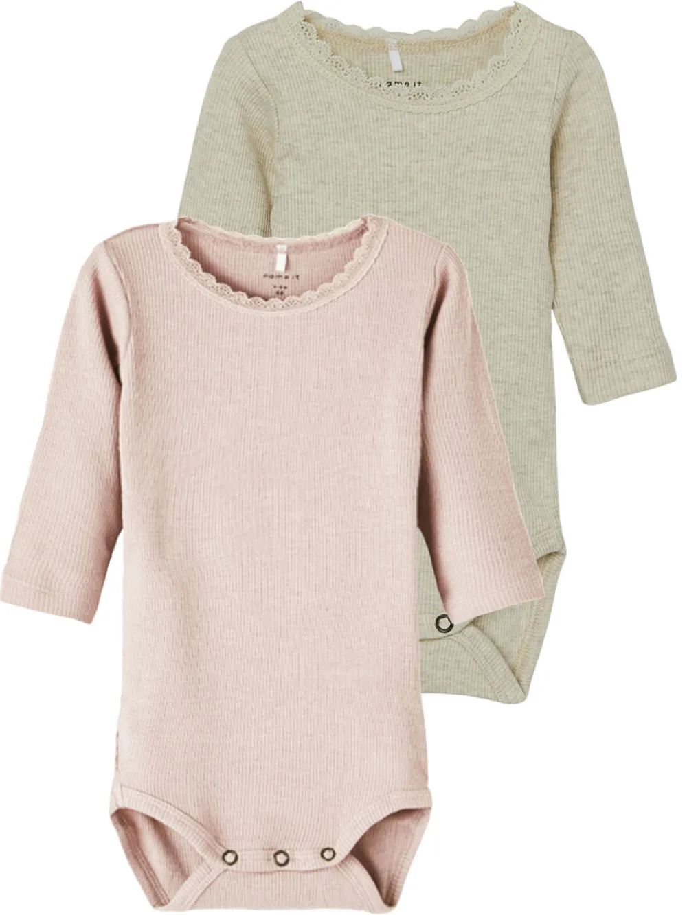 NAME IT Kab 2p langærmet body er et skønt valg til de mindste. Sættet består af to bodyer med lange ærmer, som er lavet i en blød og strækbar ribkvalitet, der sikrer god bevægelsesfrihed og komfort hele dagen. De fine blondekanter ved halsudskæringen giver et sødt og feminint udtryk, mens de praktiske trykknapper i bunden gør det nemt at skifte ble. Bodyerne er perfekte som basis i garderoben og kan bruges både alene eller under andet tøj. De neutrale og afdæmpede farver passer til enhver stil og er nemme at kombinere med andre items.
