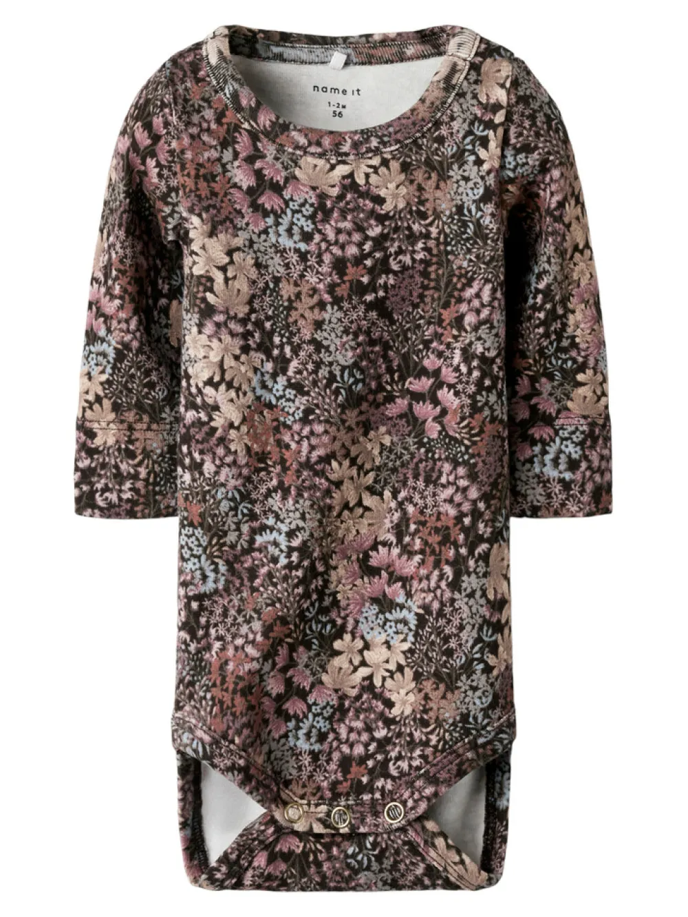 - Ærmer: Lange ærmer Lukning: Trykknaplukning i skridtet, trykknaplukning i skulderen