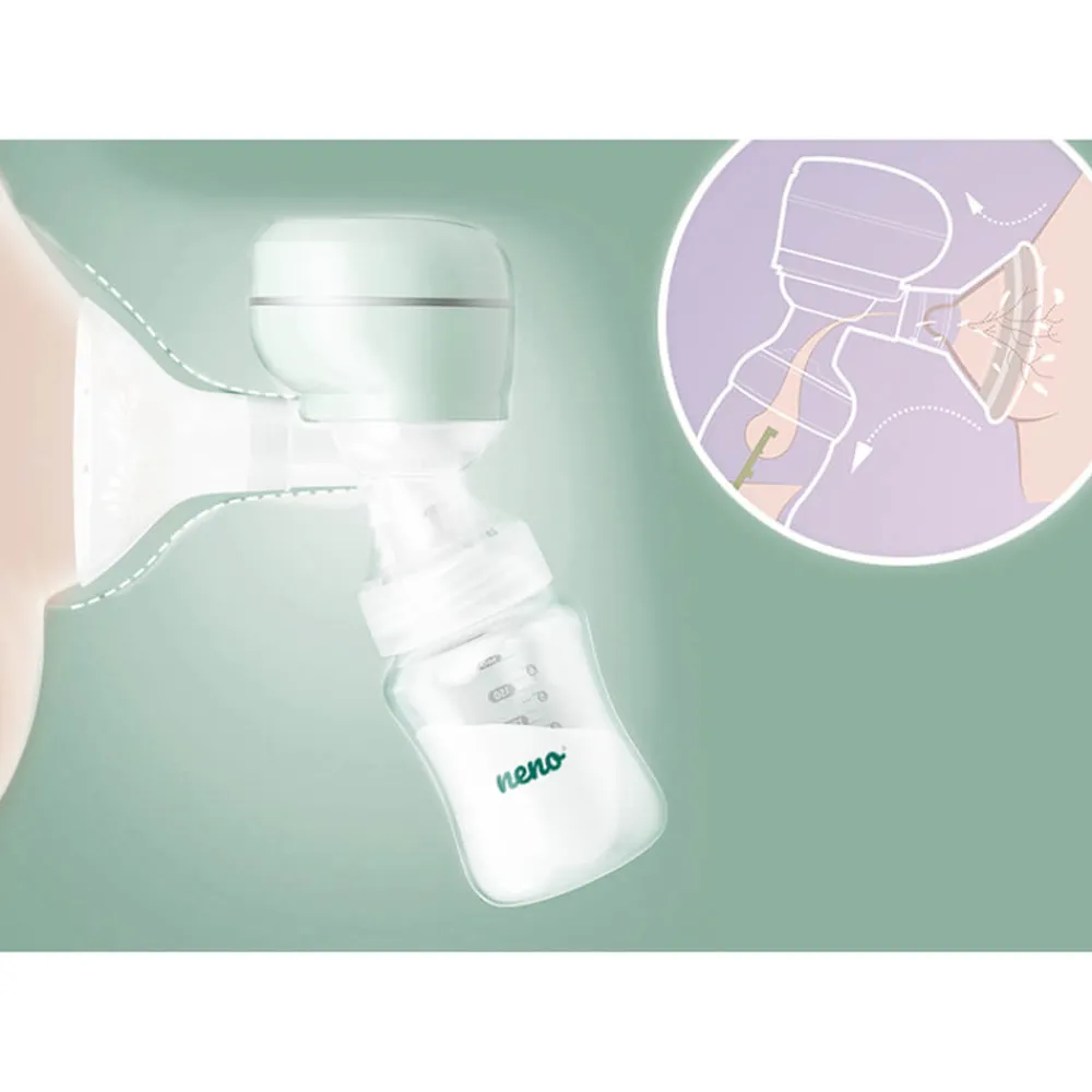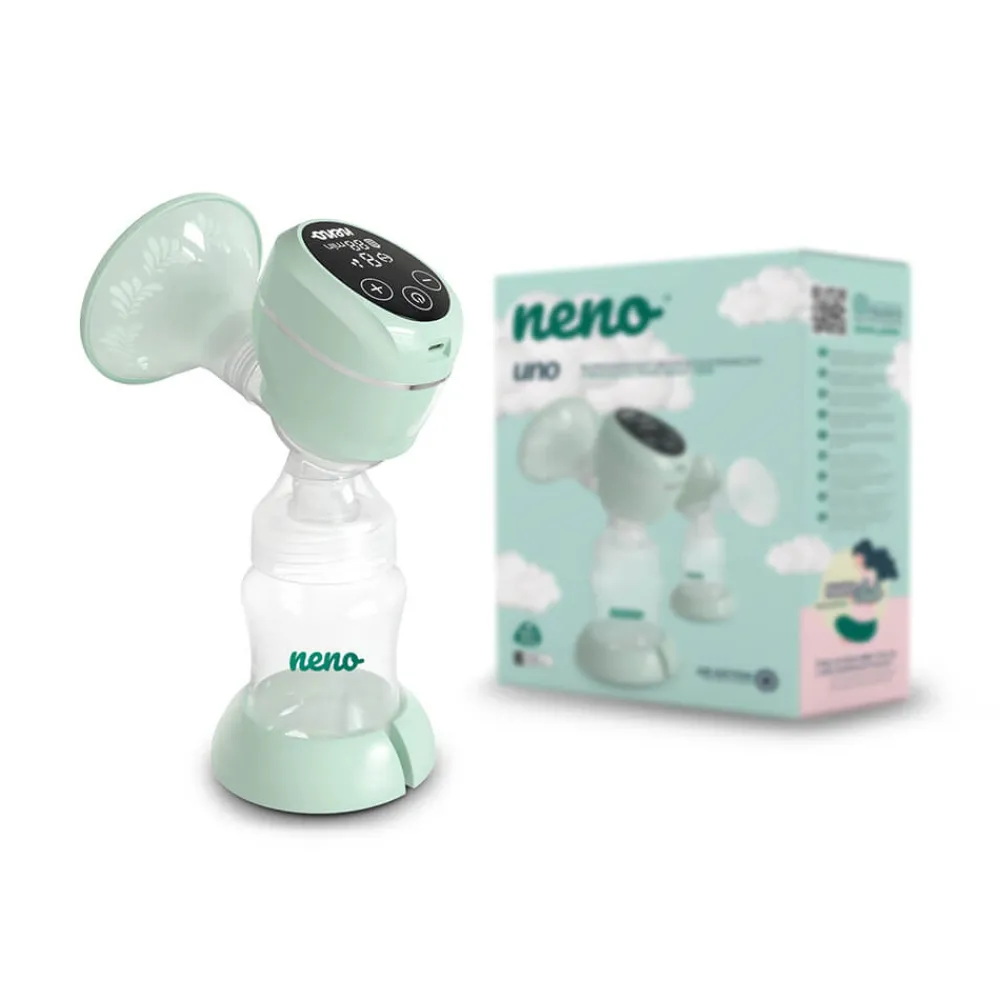 Du kan tilpasse Neno Uno til dine behov. Enheden har 6 stimuleringsniveauer og 9 intensitetsniveauer til mælkepumpning. Brystpumpen husker de sidst anvendte indstillinger. Suge systemets specielle design forhindrer mælken i at strømme tilbage, holder den frisk og sikrer den unge mors sundhed under brug. Takket være Neno Uno behøver du ikke vække din baby når mælken kommer på. Den pumpede mælk kan bruges næste gang du mader din baby. Lad i stedet dit barn sove godt. Neno Uno brystpumpe vil blive værdsat af enhver arbejdende mor. Enhedens pumpeenhed og batteri er småt, så du nemt kan tage enheden med dig og bruge den hele dagen. Brysttragten på enheden er lavet af en behagelig, japansk silikone, der ikke irriterer huden og giver et bedre mælkeflow. Ingen del af brystpumpen indeholder BPA, hvilket gør den sikker at bruge. Neno Uno har et effektivt, indbygget lithium-ion-batteri, der understøtter op til 2 timers arbejde eller 4 fulde 30 minutters arbejdscyklusser med brystpumpen. Neno Uno brystpumpe er helt trådløs. Tryk blot enheden mod brystet, og tænd pumpeenheden for at begynde at pumpe mælk. Enheden skifter automatisk til driftstilstand og slukker efter 30 minutters brug. Neno Uno er nem at bruge, så let at du kan sætte den på når du har brug for den uden problemer. Du kan nemt kombinere amning med pumpning, når du er væk fra din baby. Brystpumpen leveres med en sutteflaske, så du kan bruge enheden. Dele af Neno Due brystpumpen skal rengøres og steriliseres regelmæssigt. Du kan nemt gøre dette med kogende vand eller med den dampsterilisator, du allerede bruger til at desinficere sutteflasker.
