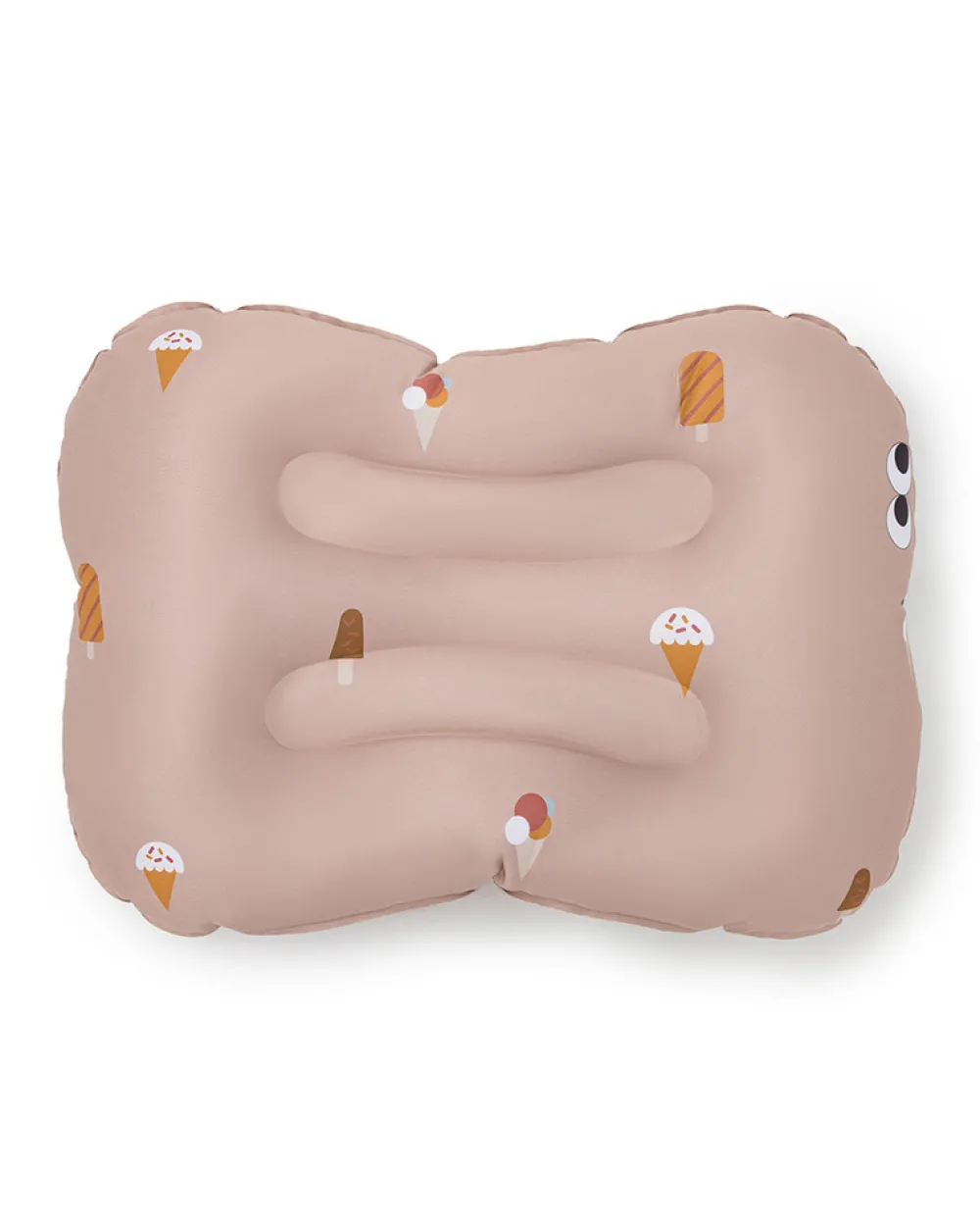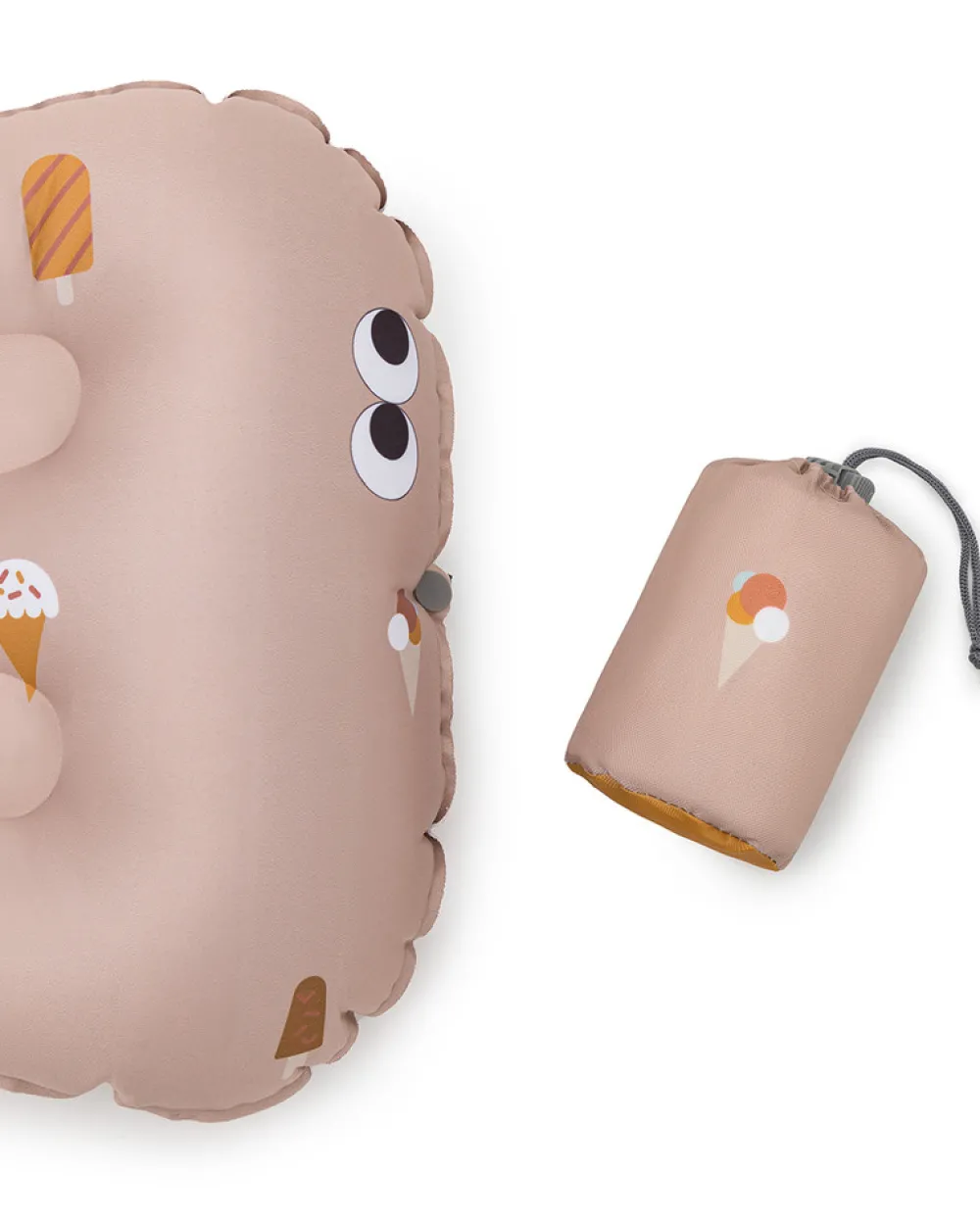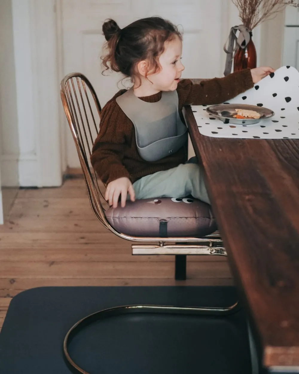 Oppustelig siddepude til barnet, der er for stort til højstolen og for lille til en spisestol.