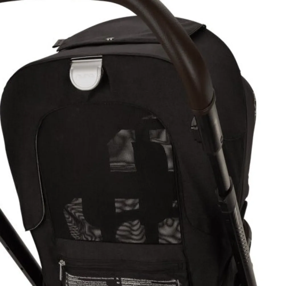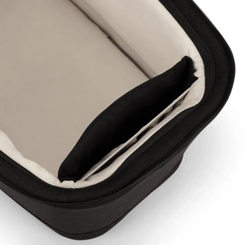 Integrerede memory release knapper og et håndsyet bærehåndtag i kunstlæder gør det nemt at afmontere fra klapvognsstellet. Der er også en skjult opbevaringslomme til alle de ekstra nødvendigheder.