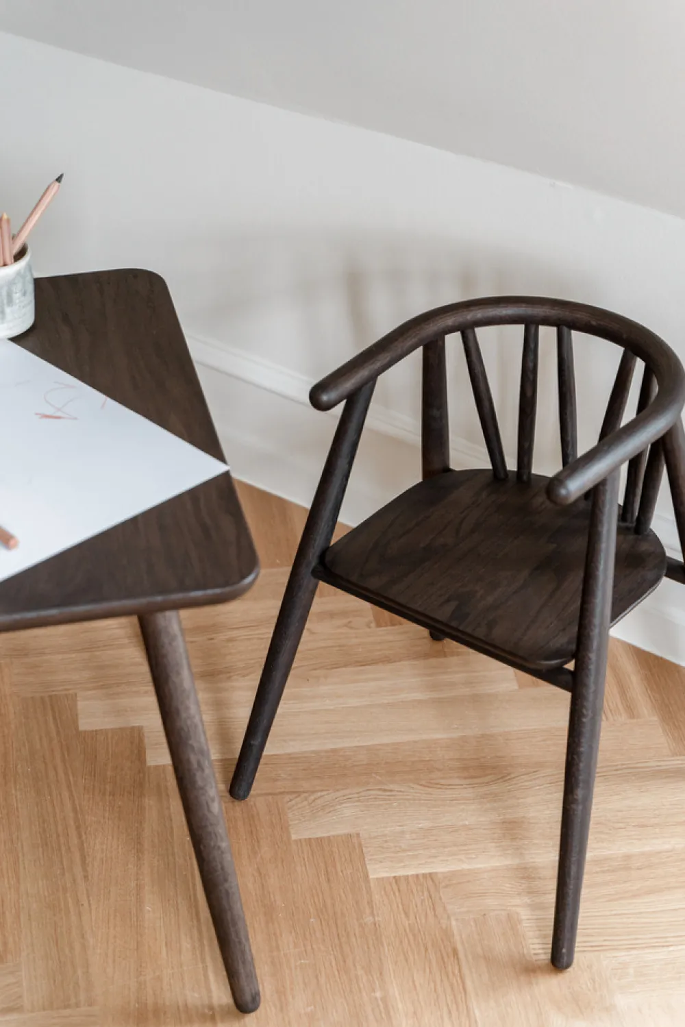 Storm børnestolen er designet af Nina Bruun i 2021. Stolen er designet med en kompromisløs tilgang til såvel æstetik som funktionalitet. Stolens smukke linjer har referencer til Oaklings øvrige stoledesigns og den vil passe smukt ind på både børneværelset og i hjemmets øvrige rum.