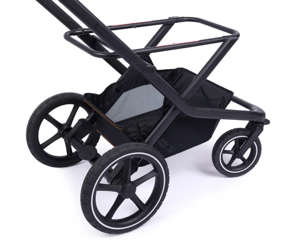 Vida lux kurv med fine læder detaljer og læder logo, der matcher detaljer på Vida lux barnevognen.