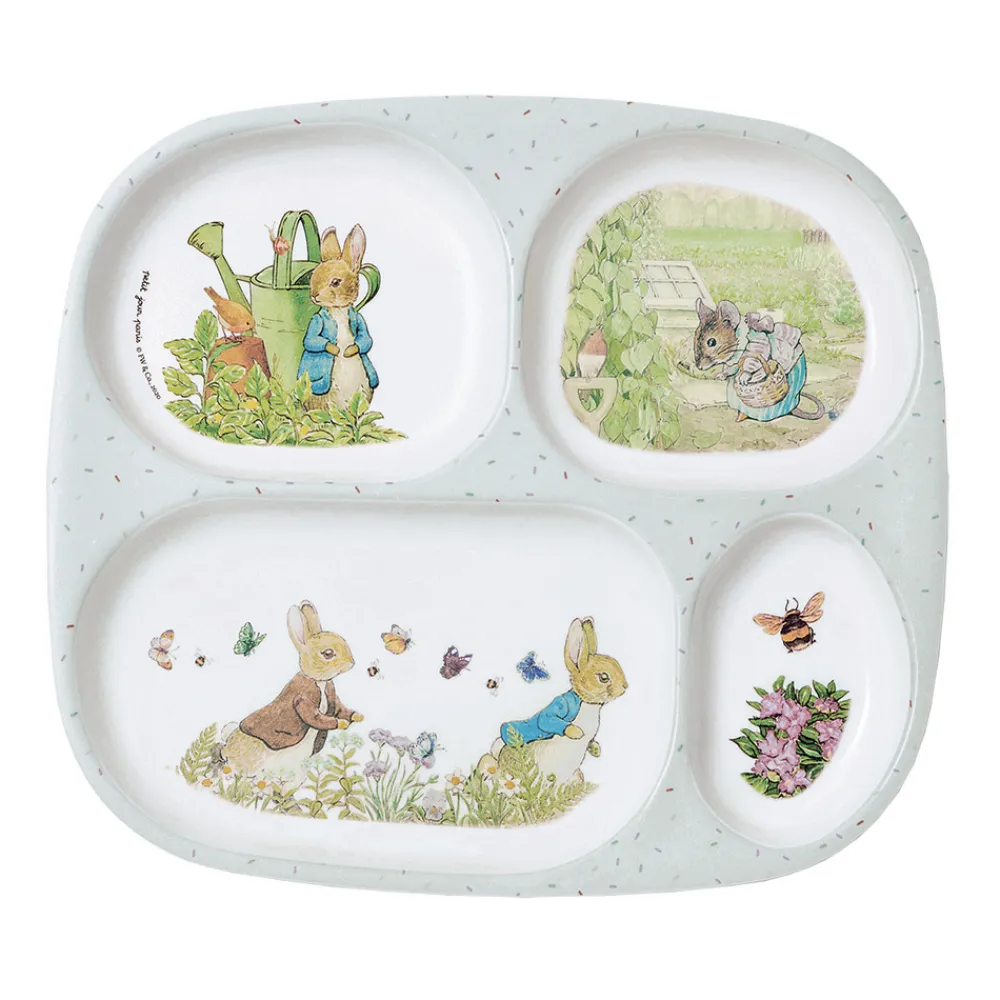 Mange børn bryder sig ikke om, at maden blander sig på tallerkenen. Med denne fine rum-indelte tallerken kan du nemt få maden til at se indbydende ud, og få portionsanrettet de forskellige fødevaregrupper.