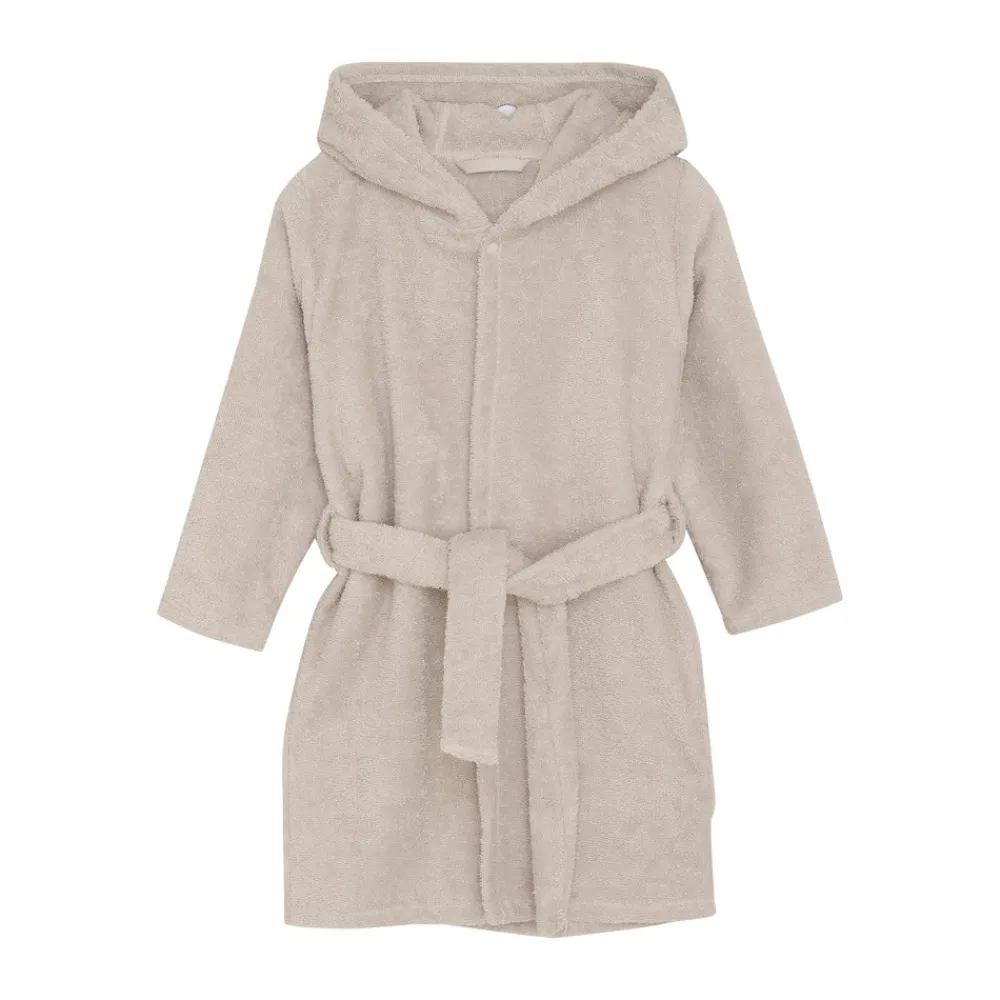 Denne badekåbe er designet specielt til børn og er lavet af blød frotté, der sikrer maksimal komfort og varme. Den er både praktisk og stilfuld med et bindebælte, der giver en justerbar pasform, så den sidder perfekt hver gang. Ideel til brug efter badet eller som en hyggelig morgenkåbe.