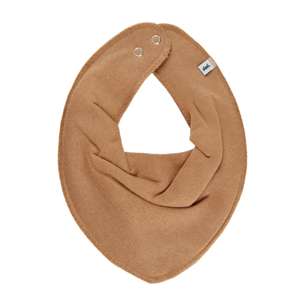 Tørklæde formet hagesmæk med trykknap i nakken.