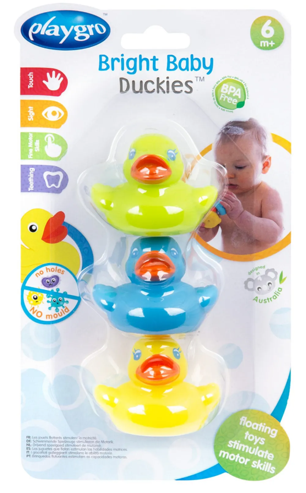 3 fine badeænder fra Playgro der er forseglet, så der ikke kommer vand ind i ænderne. Sjovt at have med i badekarret.