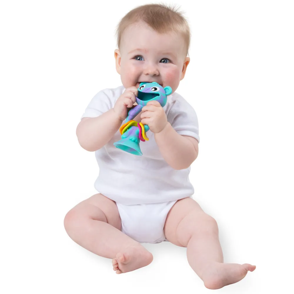 Den sjove bjørn med sugekop kan f.eks. Sættes fast på et bord eller bilvindue, så der er underholdning på køreturen. Lad dit barn udforske bjørnen og stimuler dit barns sanser og nysgerrighed.