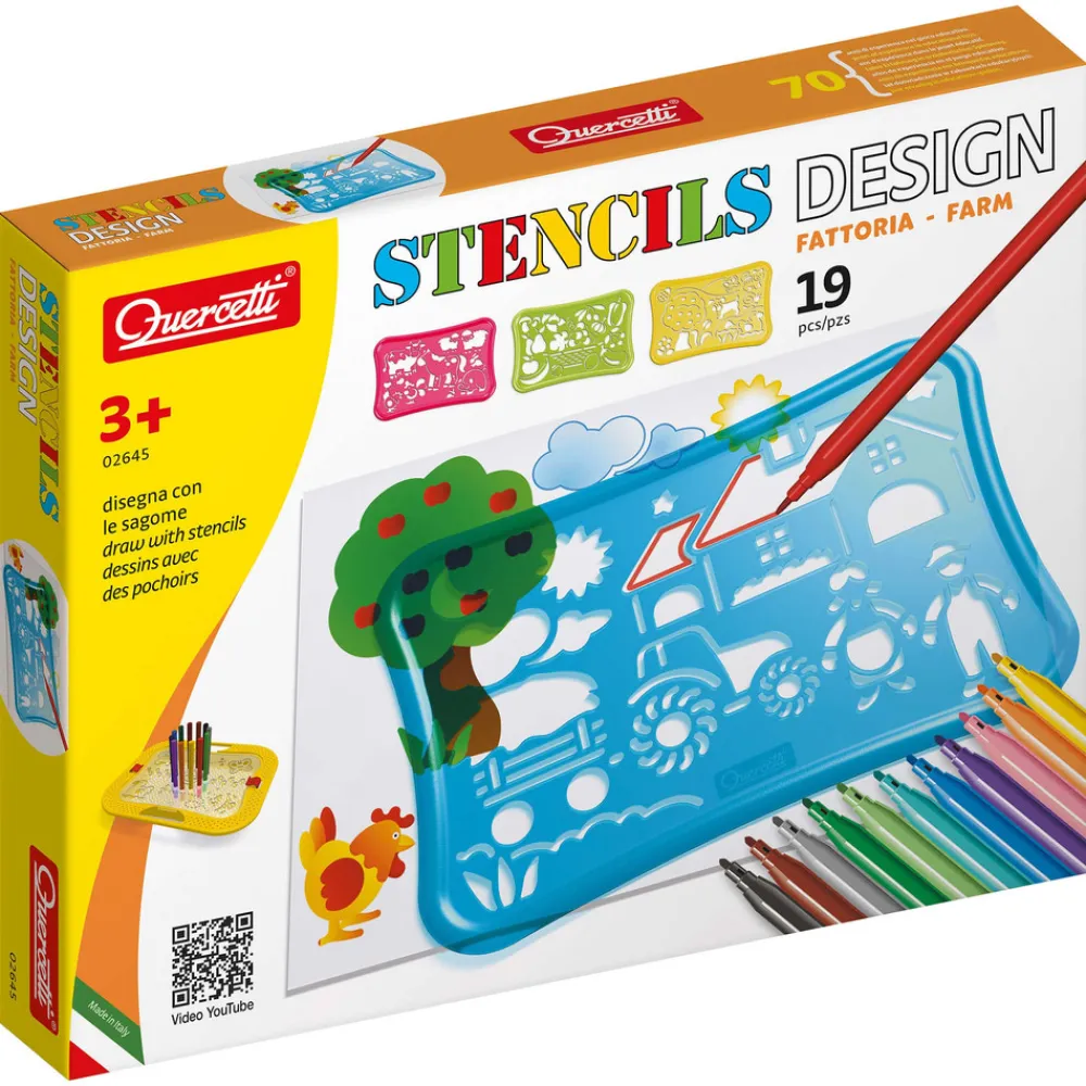 Med disse gennemsigtige skabeloner kan du lave flotte og præcise geometriske tegninger af din drømme-bondegård. Fire forskellige skabeloner med mange motiver hjælper dig med at skabe fine tegninger, som du kan farvelægge med de medfølgende tusser!