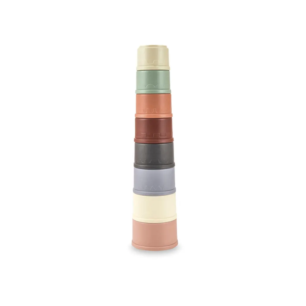 Sjove stablespande fra Scandinavian Baby Products. Sættet består af 4 “kopper” i flotte farver. I bunden er der udstanset huller, der gør spandene ideele til vandleg.