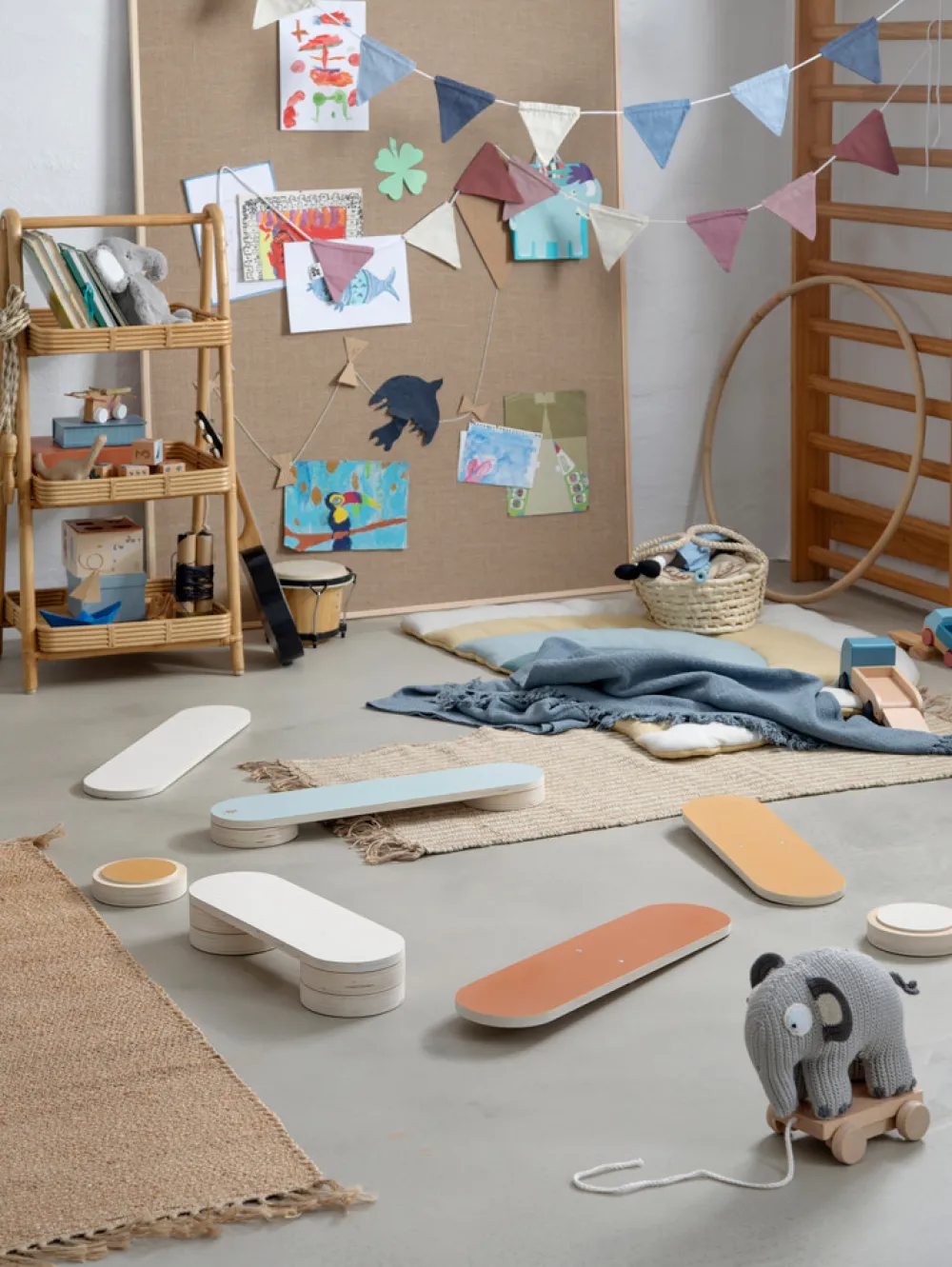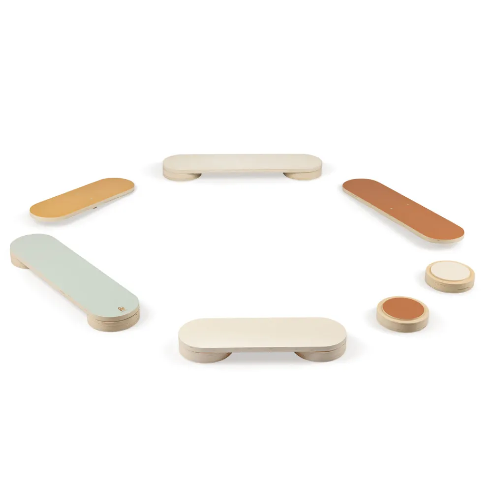Sjov balancebane til børn. Banen består af 13 dele, der er fremstillet i FSC certificeret træ og andre kontrollerede materialer. De 8 balancesten og 5 balancebrædder i to størrelser kan sammensættes på utallige måder, og derved skabe en fleksibel balancebane, der lægger op til leg, kreativitet og motorisk træning.