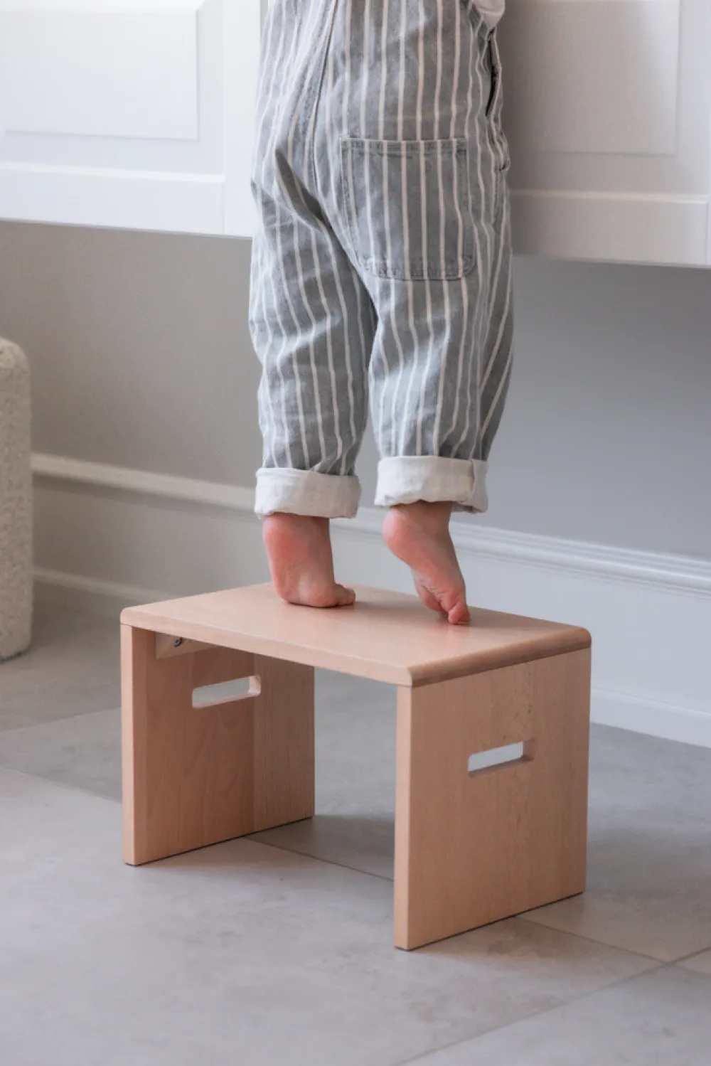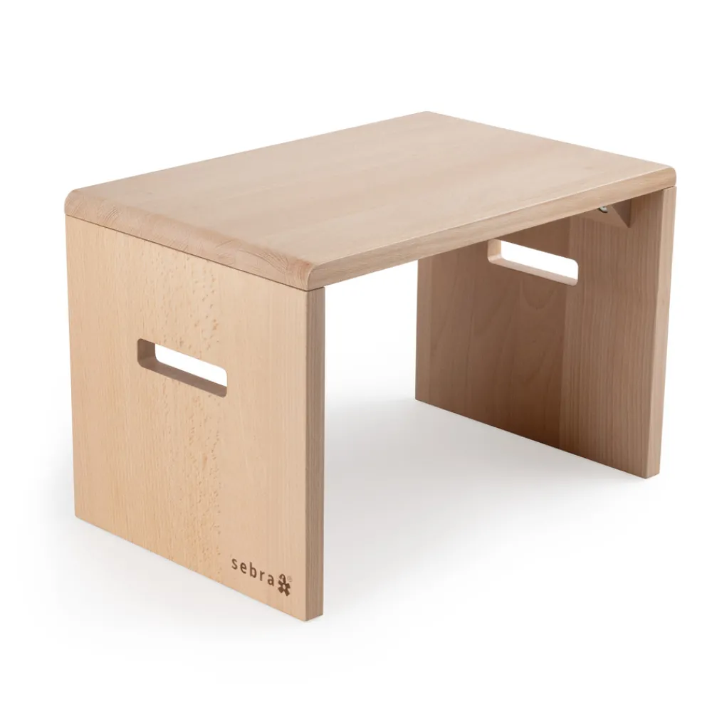 Sebra Skammel er en praktisk og stilfuld skammel designet til at gøre det nemt for børn at komme op i Sebra Sengen, Baby & Jr., når tremmesiderne er taget af.