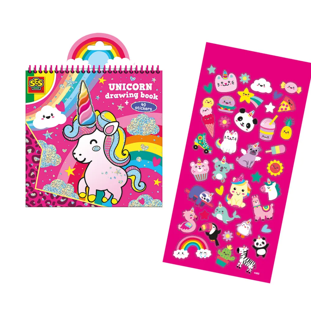 Indeholder: enhjørnings skumhorn, som kan ses igennem alle sider, 15 ark, der kan farvelægge, 40 blanke klistermærker, skumenhjørning, matchende klistermærker.