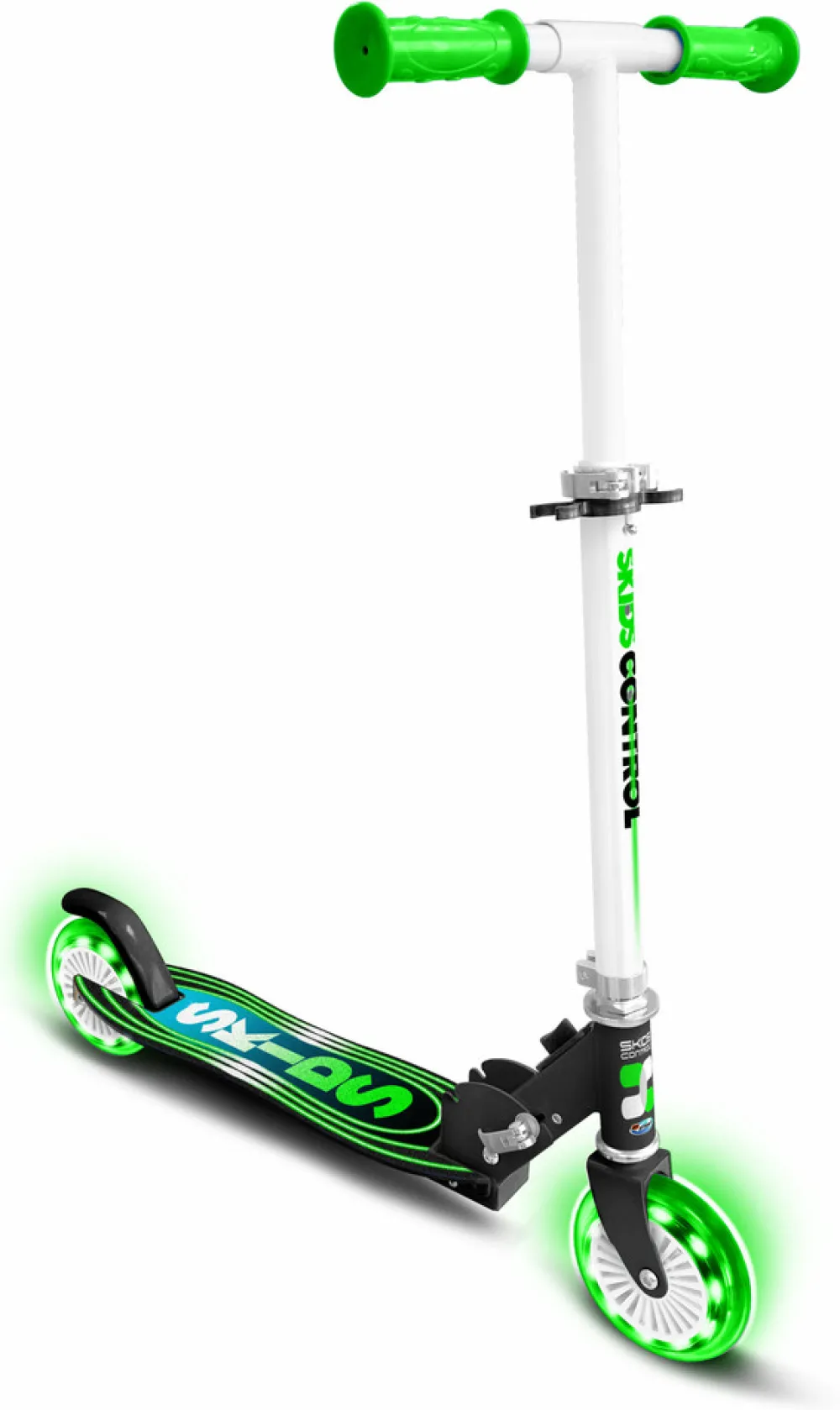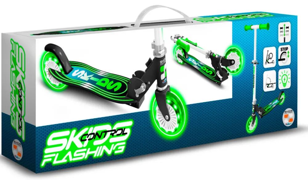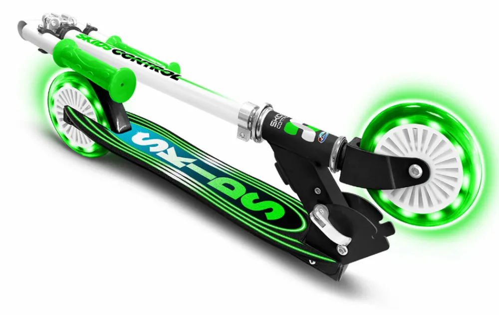 Skids Control foldbart løbehjul med lys, en ergonomisk stå-plade og justbar højde, så løbehjulet kan vokse med barnet.