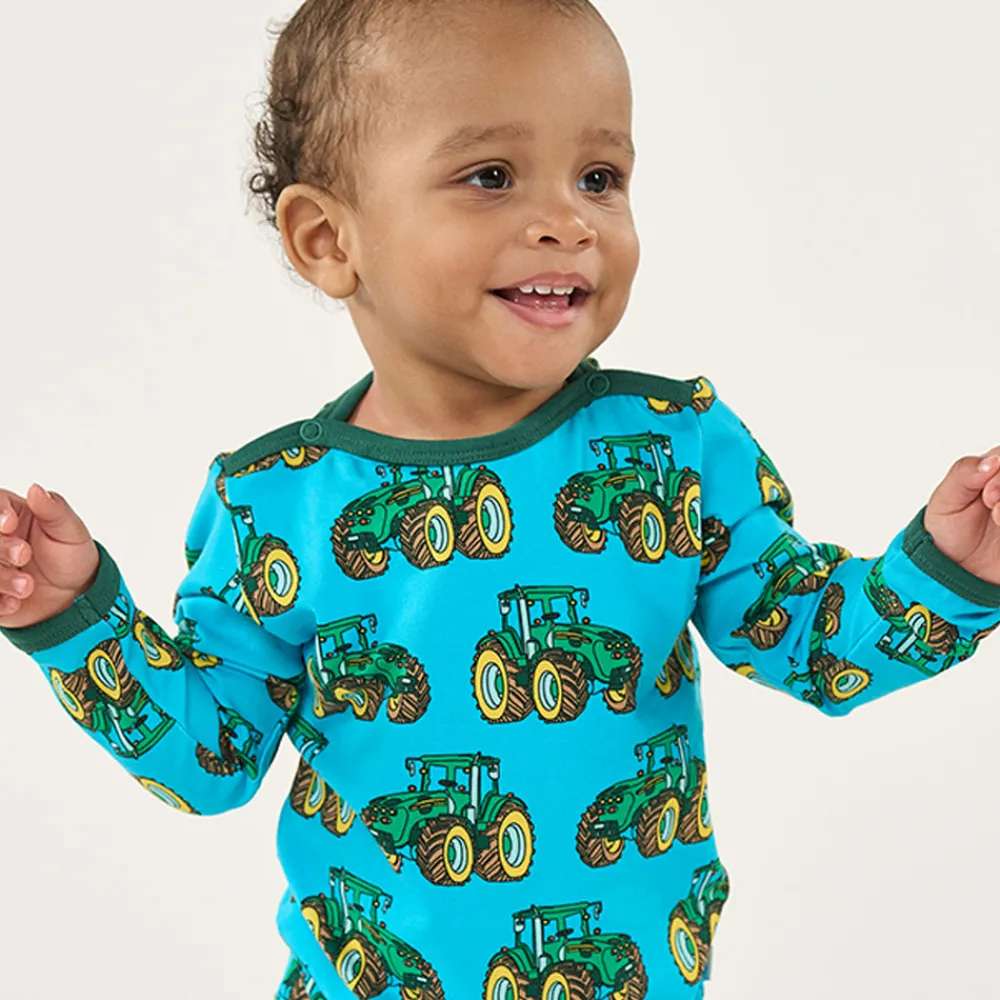 Det legende traktorprint tilføjer et strejf af spænding, perfekt til de små, der elsker sjove designs. Småfolks print er tegnet med fokus på glade farver, detaljer og historier. Vores bodyer er en god måde at tilføje personlighed til dit barns garderobe, samtidig med at dit barn kan føle sig komfortabel hele dagen.