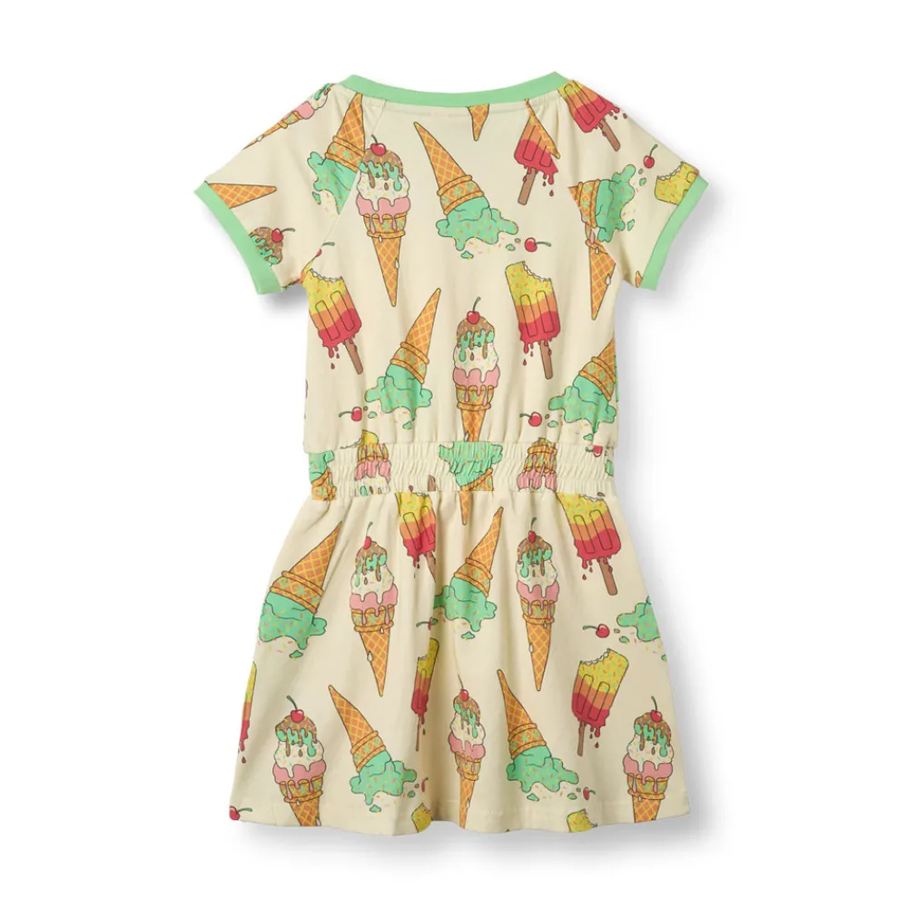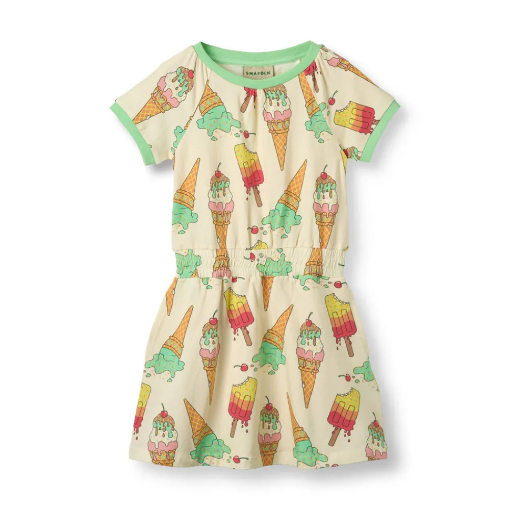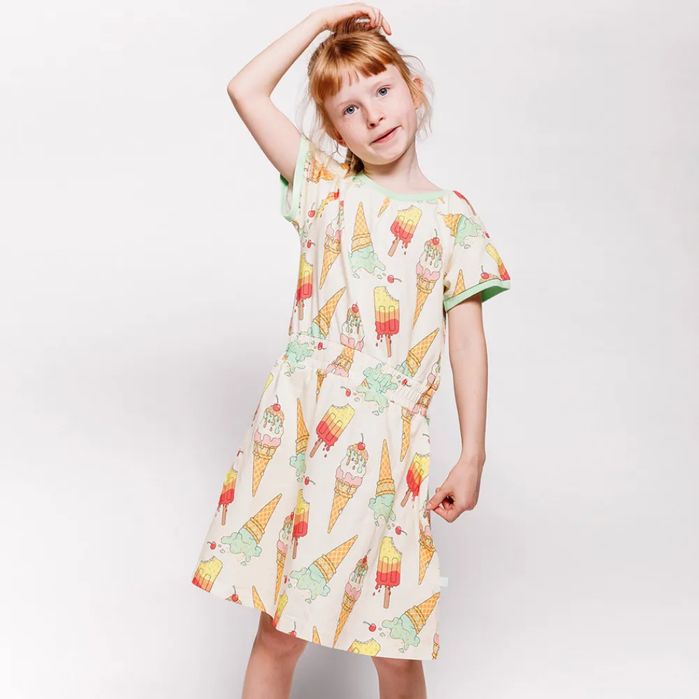 Køl af med stil med dette livlige sommer-isprint, perfekt til solrige eventyr. Småfolks print er designet med fokus på glade farver, detaljer og historier. Kjoler er en fantastisk måde at tilføje personlighed til dit barns garderobe og samtidig holde dit barn godt tilpas hele dagen.