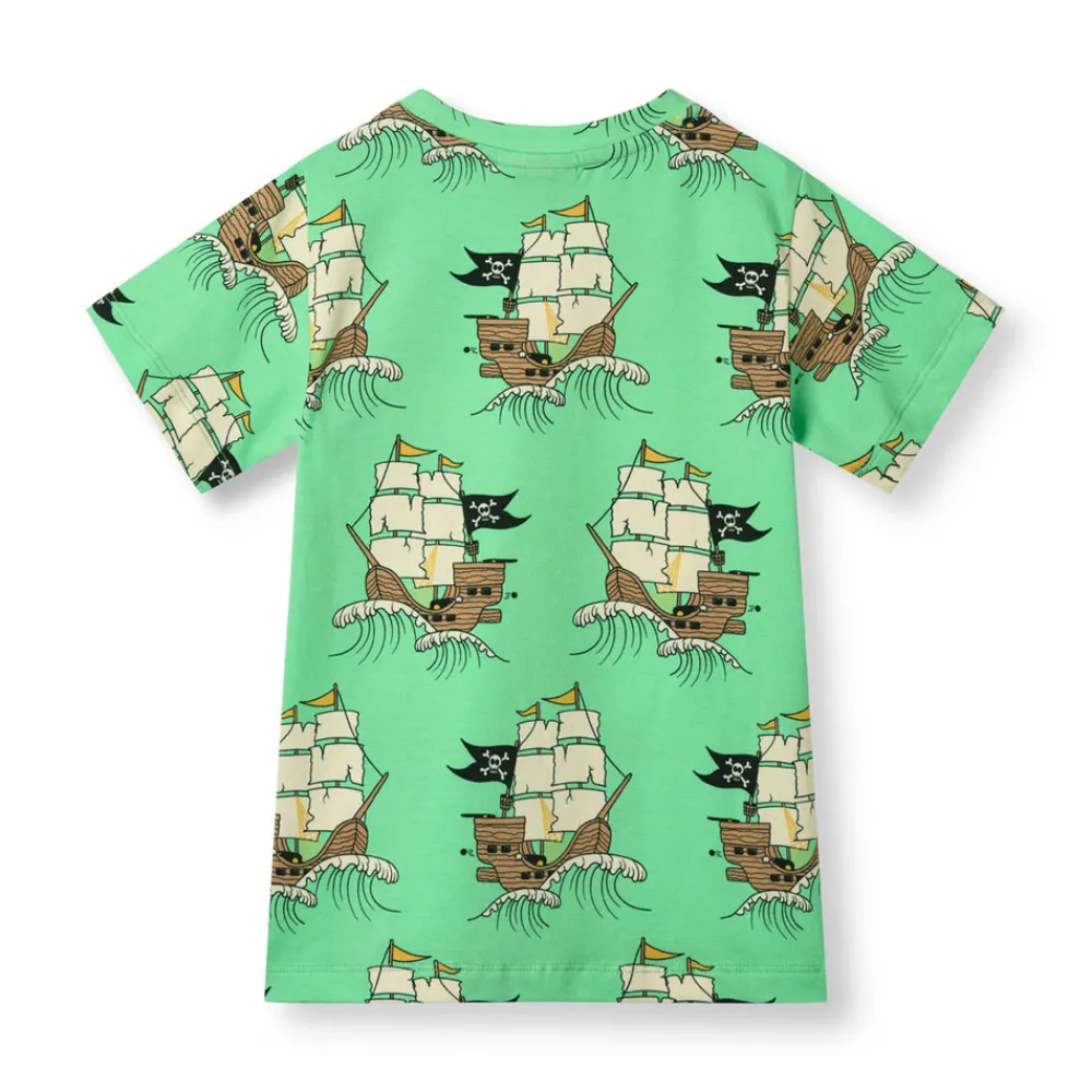 Sæt sejl til eventyr med vores spændende piratskibsprint, perfekt til små opdagelsesrejsende og håbefulde kaptajner. Småfolks print er designet med fokus på glade farver, detaljer og historier. Vores t-shirts tilføjer personlighed til dit barns garderobe og holder dem komfortable hele dagen.