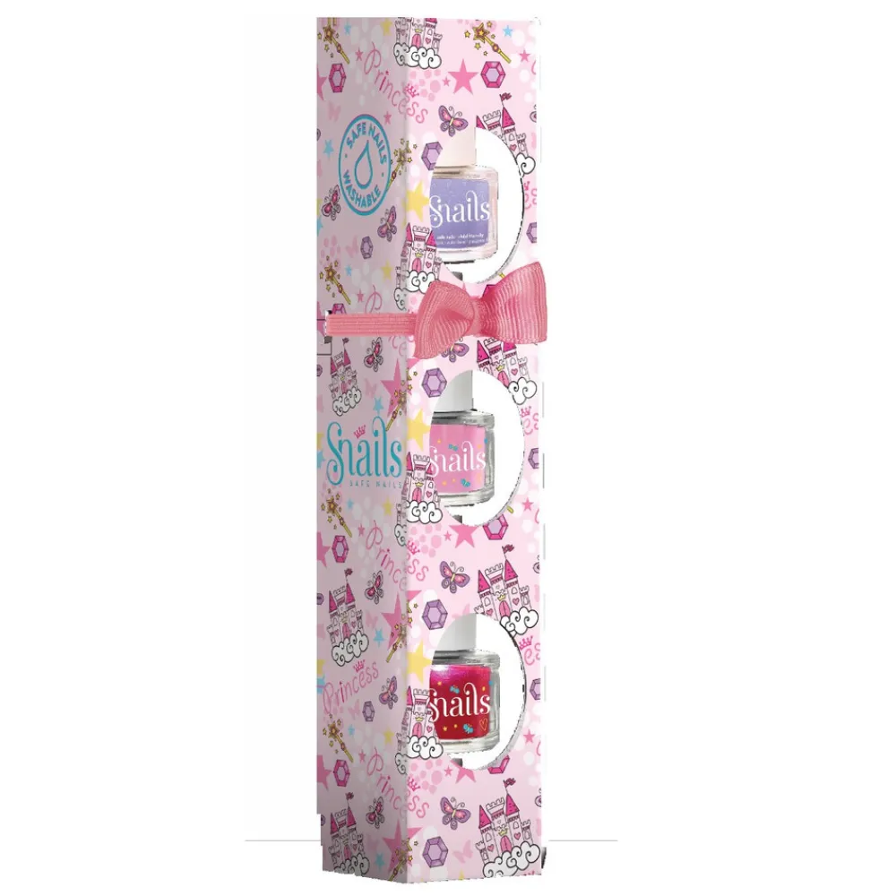 En flot gaveæske indeholdende 3 skønne Snails neglelakker. Neglelakken vaskes nemt og hurtigt af igen, blot med lidt vand og sæbe.