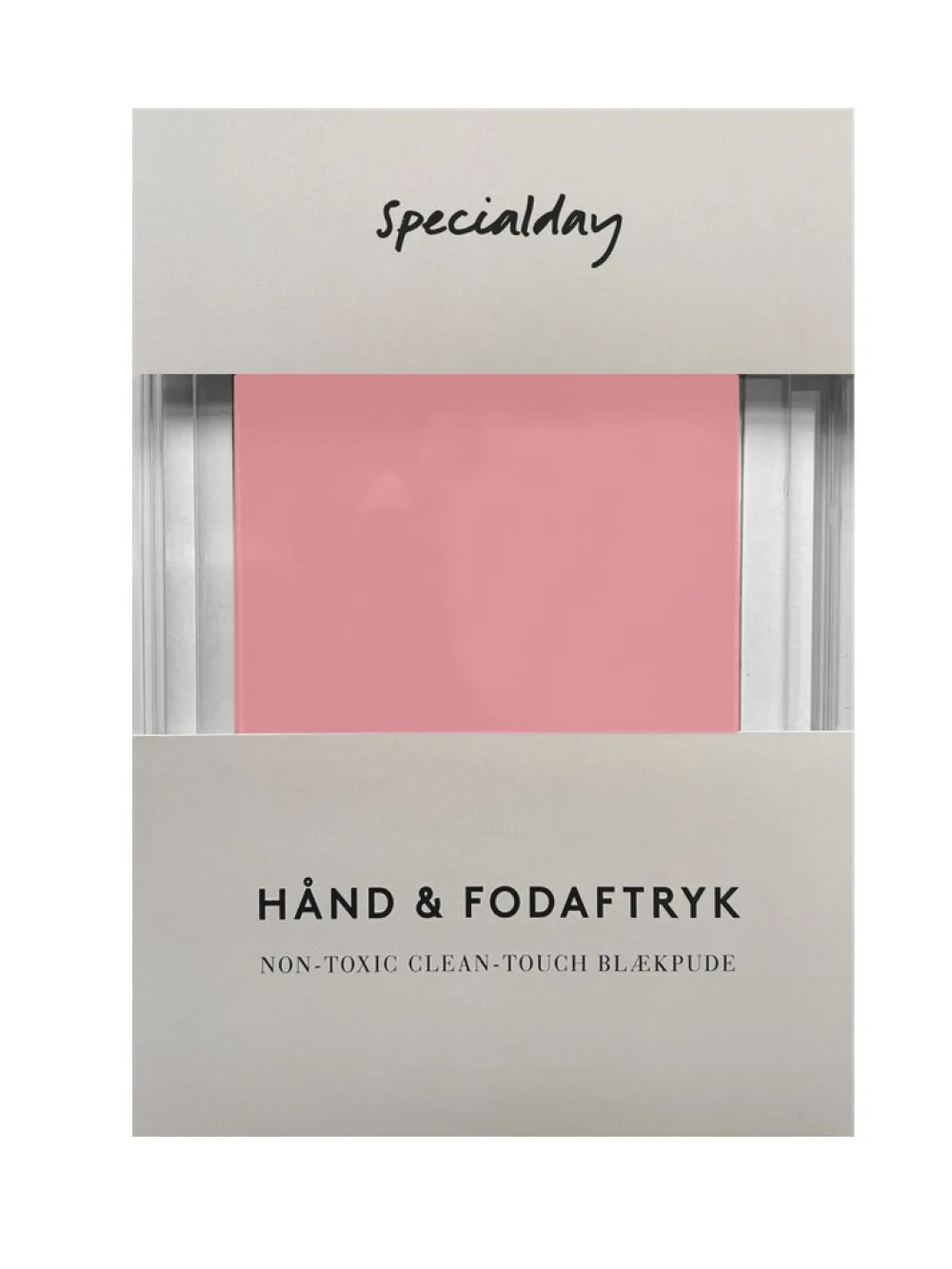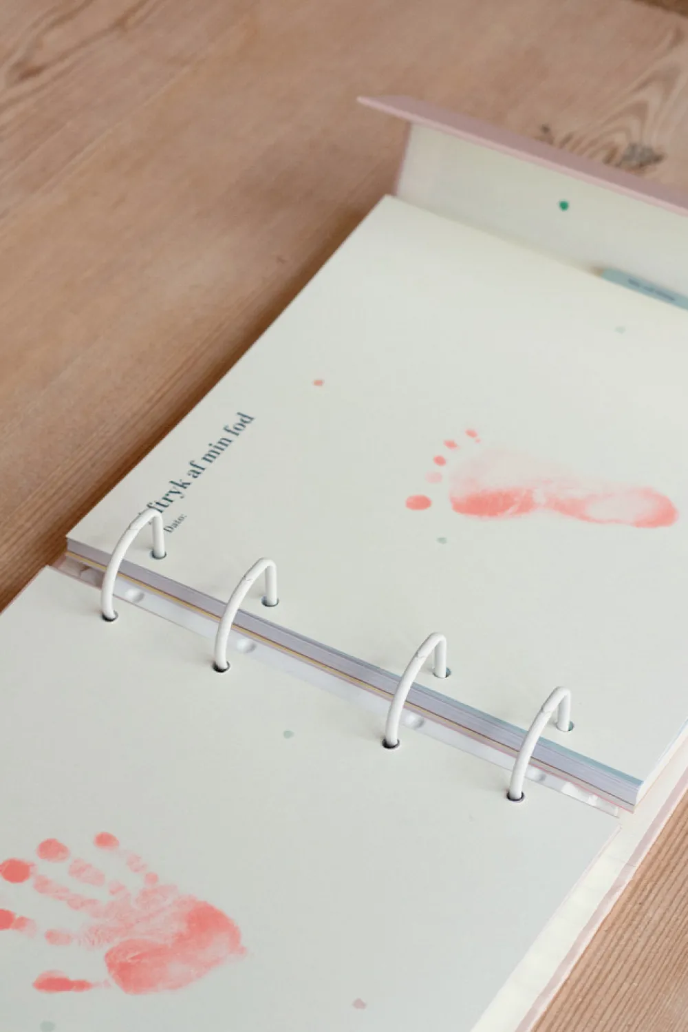 Hånd- og fodaftryk til baby og små børn i fine farver der passer til siderne i barnets bog fra Specialday. Non-toxic clean-touch blækpude