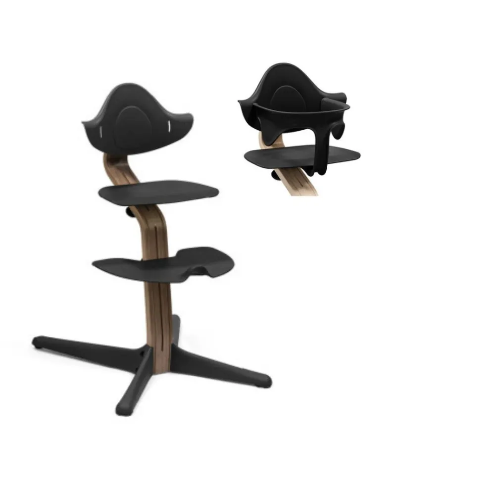 Stokke® Nomi® højstolen er designet af Peter Opsviks med blik for barnets motoriske udvikling og behov. Stokke® Nomi® er skabt ud fra en ambition om at lave verdens bedste højstol, både hvad angår ergonomi, funktion og design – også kan den vokse med barnet. Om det er spisetid eller hyggetid ved bordet så kan det ikke undgås at barnet bevæger sig og måske har svært ved at sidde stille? Derfor skal en god stol give støtte og frihed til bevægelse, både når barnet sidder ved bordet og når det kravler op og ned af stolen. Stokke® Nomi® højstolen vokser i takt med barnet, og højden på sædet og fodpladen reguleres trinløst – helt uden brug af værktøj, og dybden tilpasses automatisk når højden reguleres. Formen, størrelse og struktur på både sædet og fodpladen giver en sikker indstigning og sikkert fodfæste, og duppen på fodpladen er med til at stimulere barnet og giver urolige fødder et sted at holde “frikvarter”. Rygstøtten på højstolen er udformet for optimal ryg- og armstøtte – alt dette samlet er man sikker på barnet sidder behageligt og i korrekt ergonomisk siddeposition.