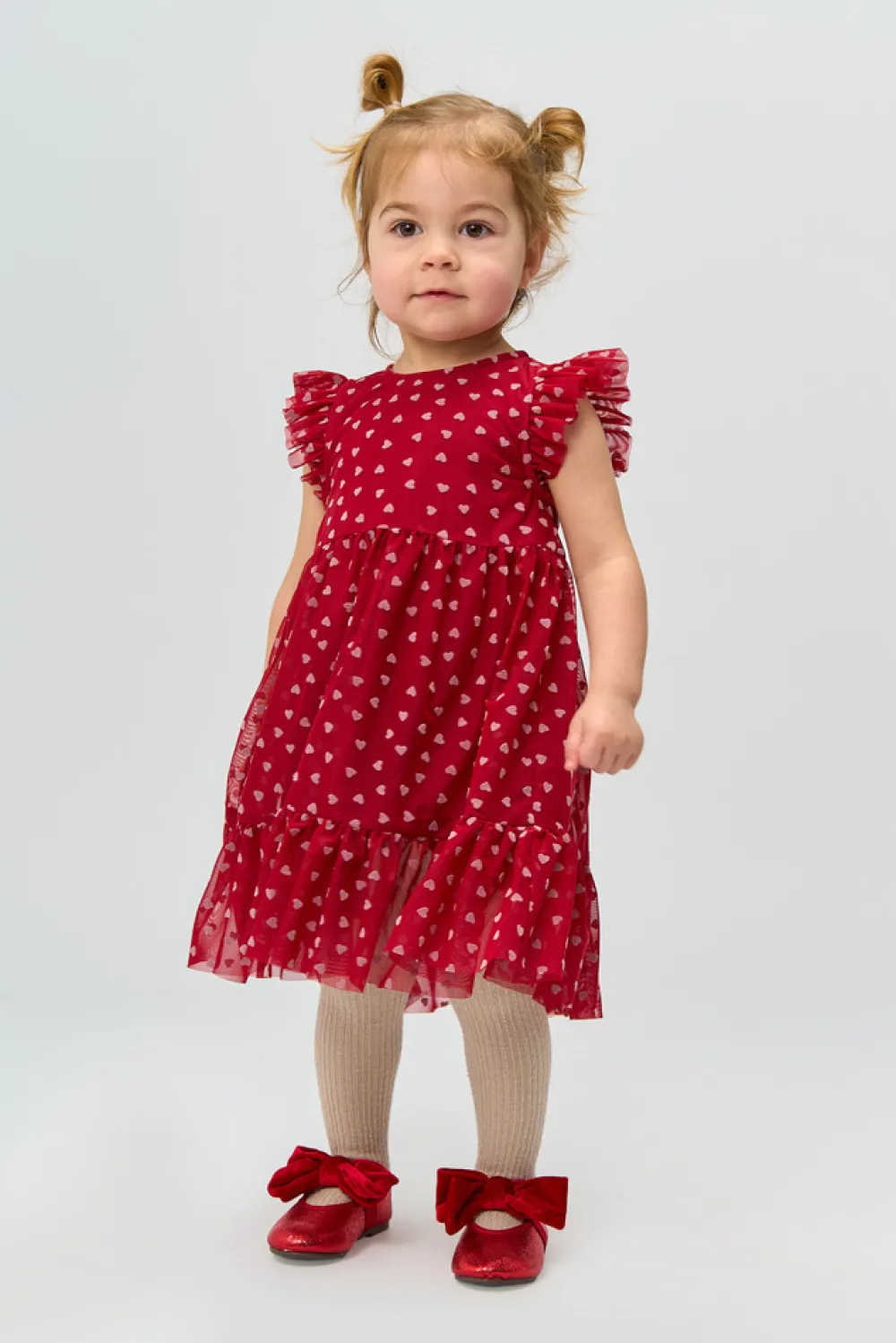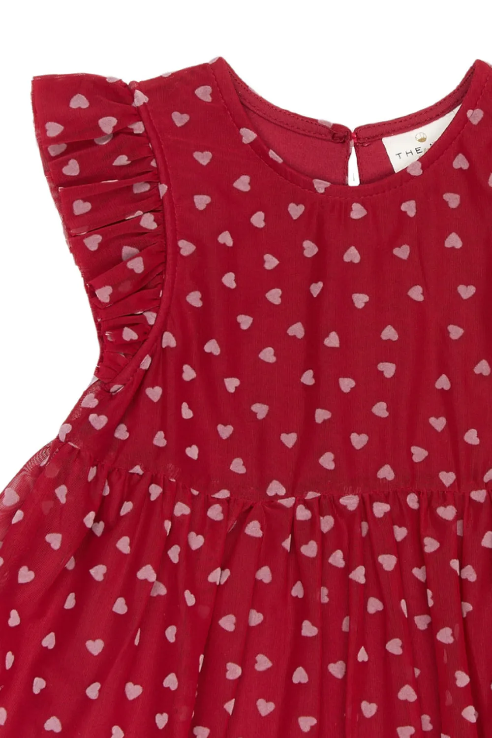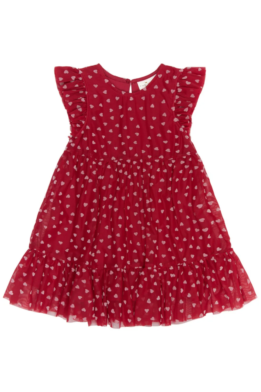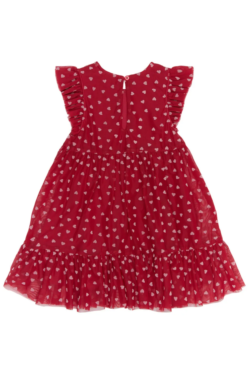 Denne kjole fra THE NEW Siblings er perfekt til festlige lejligheder med sit romantiske og legende design. Den er lavet af lagdelt tyl med et delikat all-over hjerteprint og har charmerende flæsedetaljer ved ærmerne og forneden. Den udstrakte nederdel og lette fornemmelse giver smukke bevægelser og en drømmende silhuet – ideel til fester, leg og specielle øjeblikke.
