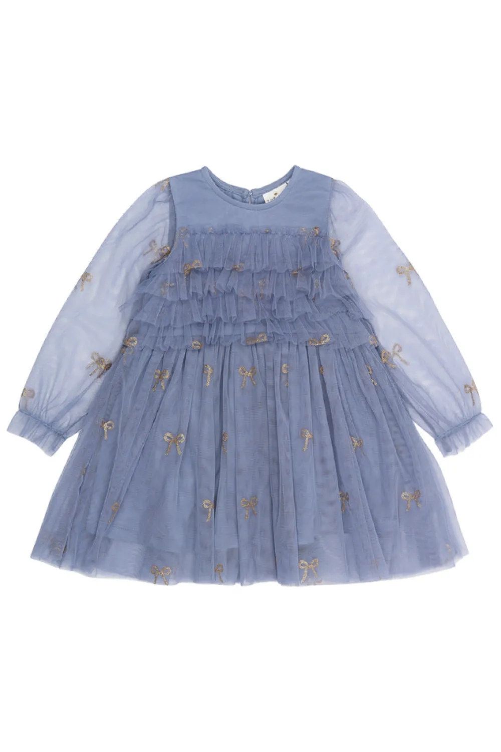 Denne kjole fra THE NEW Siblings er en drømmende og elegant stil, perfekt til festlige lejligheder. Fremstillet af lagdelt tyl med smukke broderede sløjfer, giver den et delikat og feminint look. Kjolen har lange gennemsigtige ærmer, rynkede detaljer over brystet og en bred pasform, der skaber en let og luftig silhuet. Et ideelt valg til både særlige begivenheder og udklædningsøjeblikke.