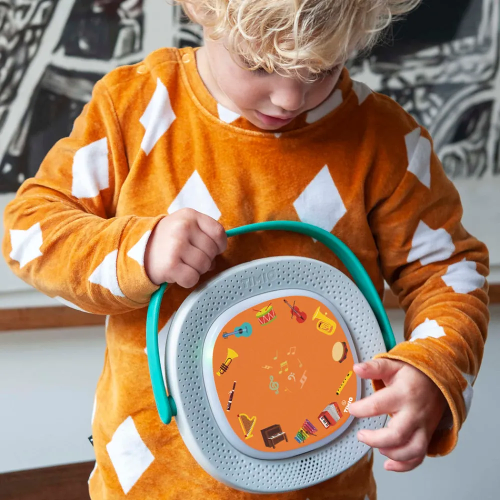 TIMIO, det interaktive lydlæringslegetøj, hjælper børn med at udvide deres viden og ordforråd fra 2-6 år. Lær alfabetet, tal, farver, dyr og objekter, lyt til historier, musik og børnesange. Alt sammen på 8 sprog!