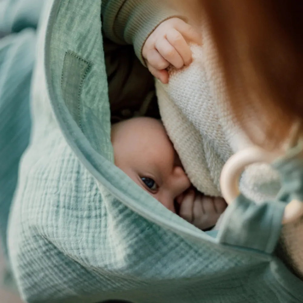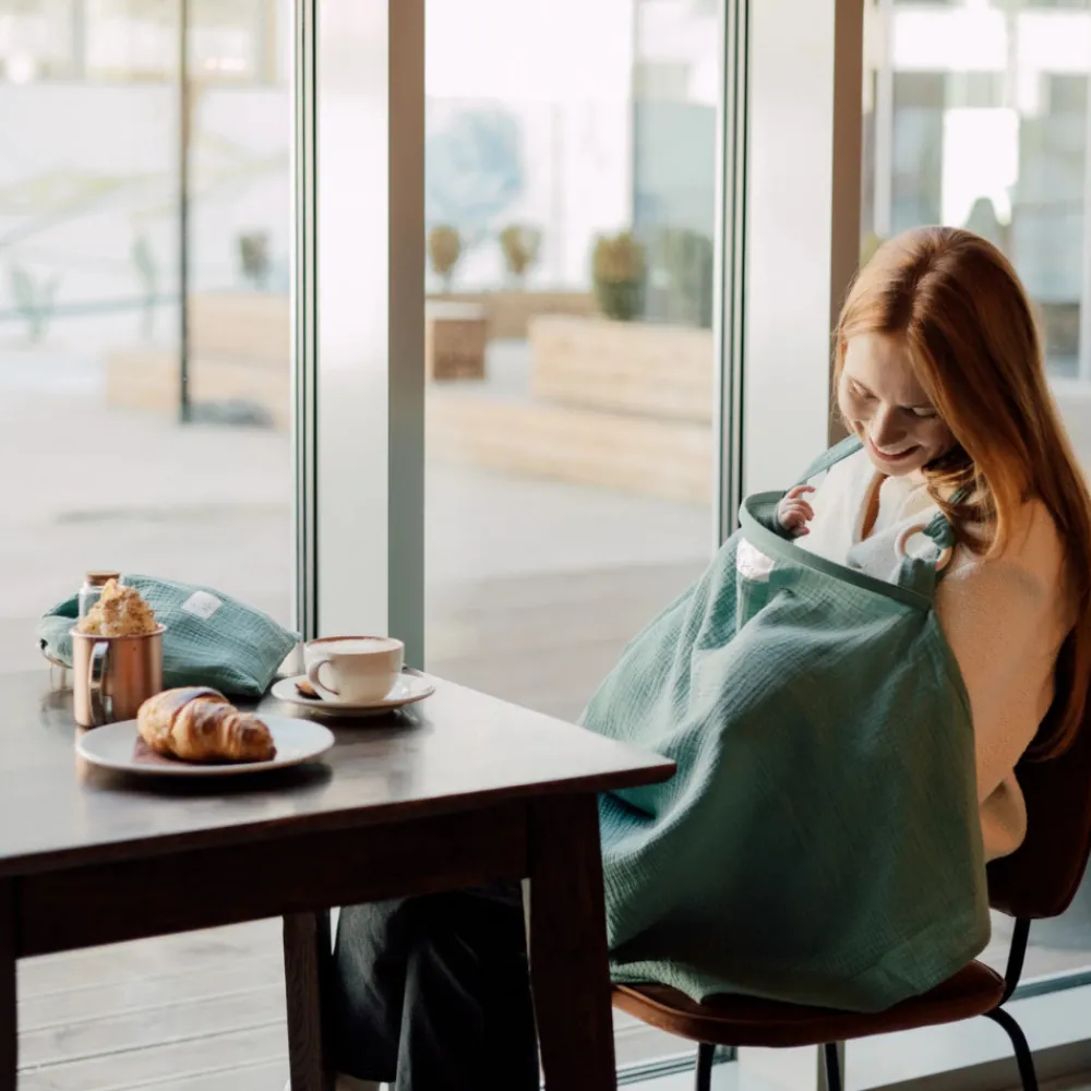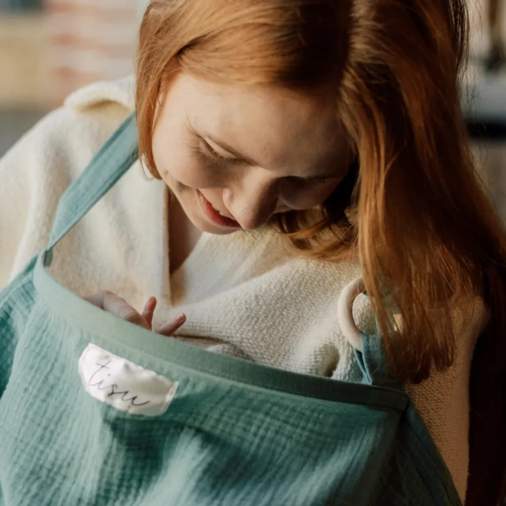 TISU ammesvøb giver mødre en bedre mulighed for at amme hvor som helst når de er på farten – butikker, caféer, ja alle steder. TISU ammesvøb hjælper dig med at skabe en behagelig og privat atmosfære, mens du ammer; for dig og din baby. Bare tag ammesvøbet over dit hoved, og du er klar til at begynde at amme! TISU ammesvøb er et førsteklasses produkt lavet af let vaskbart 100% musselinbomuldsstof og designet til at være let og åndbart. Stor halsudskæring giver dig direkte øjenkontakt med din elskede baby, så han eller hun altid kan se dig smile!Opbevar dit TISU ammebetræk med den matchende pose i en pusletaske, eller fastgør det til vognen for at have det med dig på farten!