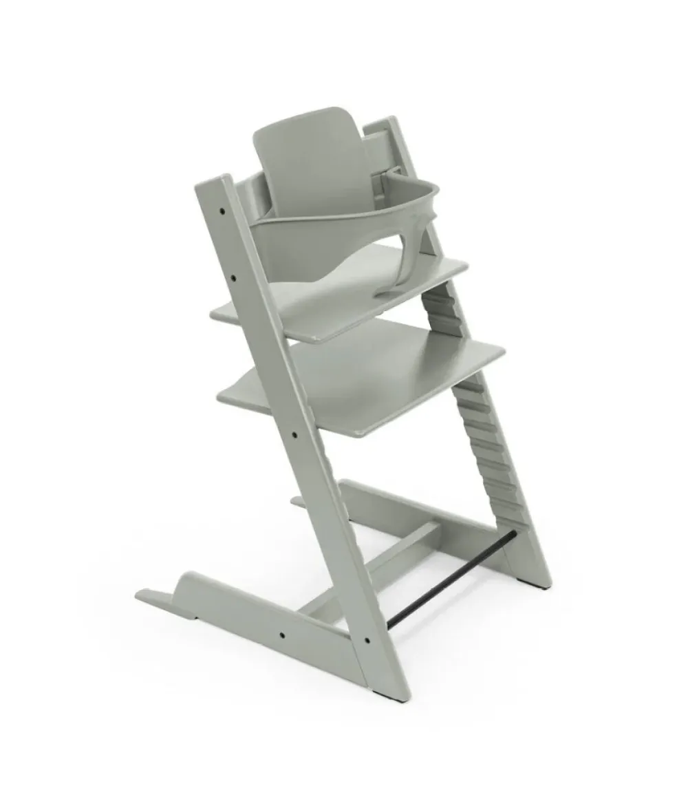 Tripp Trapp® højstolen er produceret i dyrket bøg, som er en stærk træsort, der gør produktet stabilt og holdbart, og sikrer en lang levetid. Tripp Trapp® højstolen løfter barnet op til spisebordet og skaber nærhed og fællesskab mellem barn og voksen, om det er spisetid eller hyggetid ved spisebordret. Det er let at tilpasse sidde- og fodplade i både højde og i dybden, i takt med at barnet vokser. Dermed opnås en optimal siddestilling med god bevægelsesfrihed og støtte for både fødder og ryg. Den stabile fodplade giver dit barn sikkerhed og frihed til at bevæge sig på stolen, hvilket stimulerer barnets motoriske udvikling. Fuld fodstøtte sikrer desuden at barnets ben ikke kommer til at sove. Når stolen er justeret korrekt sidder dit barn behageligt og ergonomisk korrekt uanset alder. Med Tripp Trapp® højstolen kommer dit barn til at sidde med ved spisebordet og nyde måltiderne sammen med resten af familien. Det solide og holdbare design gør at Tripp Trapp® stolen kan anvendes som højstol og senere som en ekstra stol – når der er gæster eller når der er brug for en skrivebordsstol, og med et klassisk look vil stolen aldrig gå af mode.