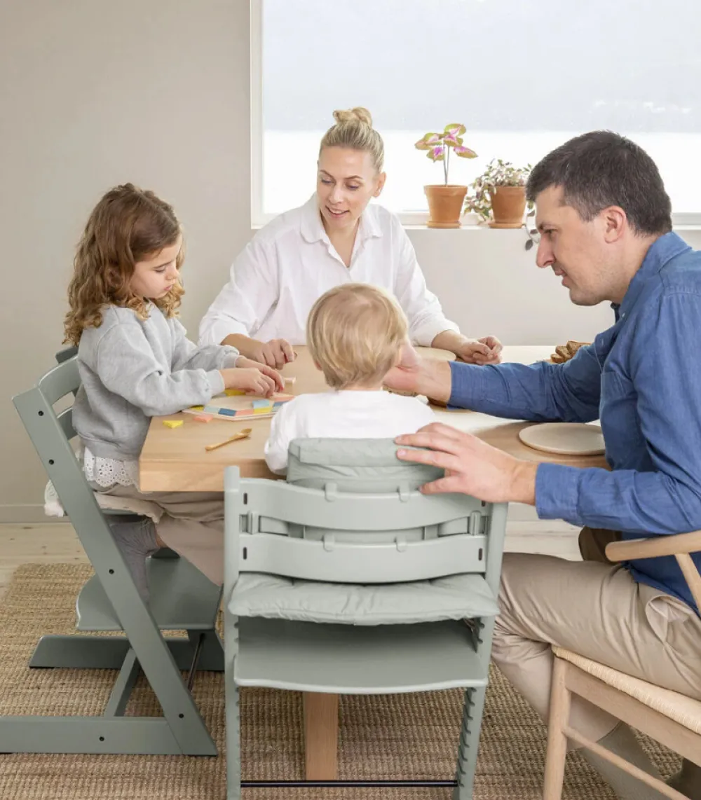 Klik det nemt på din Tripp Trapp højstol og barnet kan sidde trygt og være med ved spisebordet