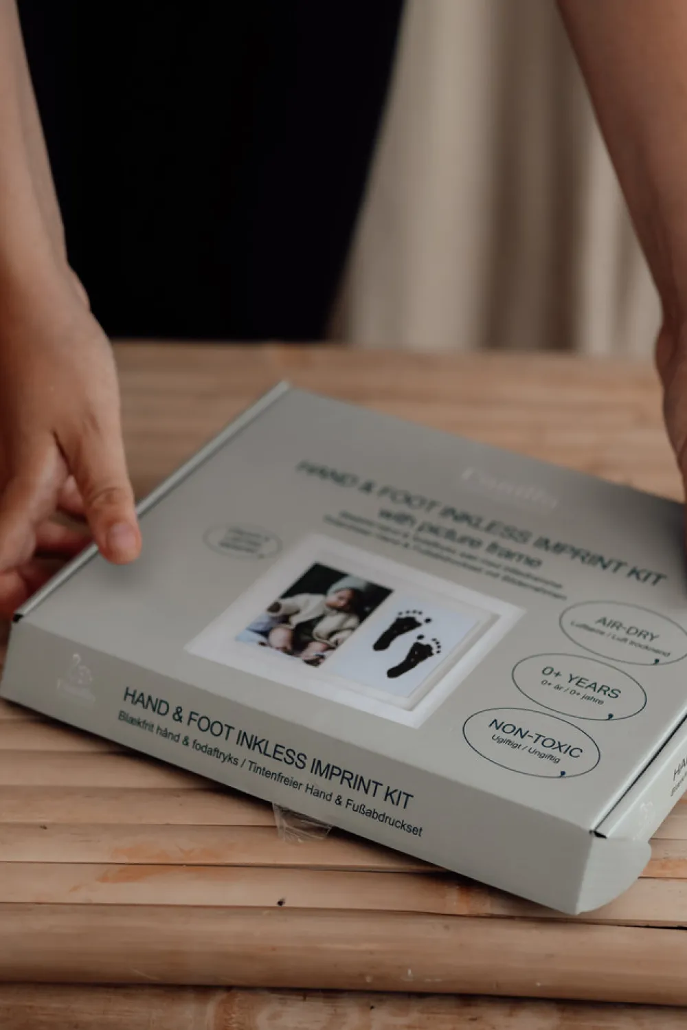 Skab minder, komplet sæt til at lave et aftryk af barnets fod eller hånd derhjemme. Resultatet er et vedvarende og smukt minde, perfekt til dit eget hjem eller som gave.