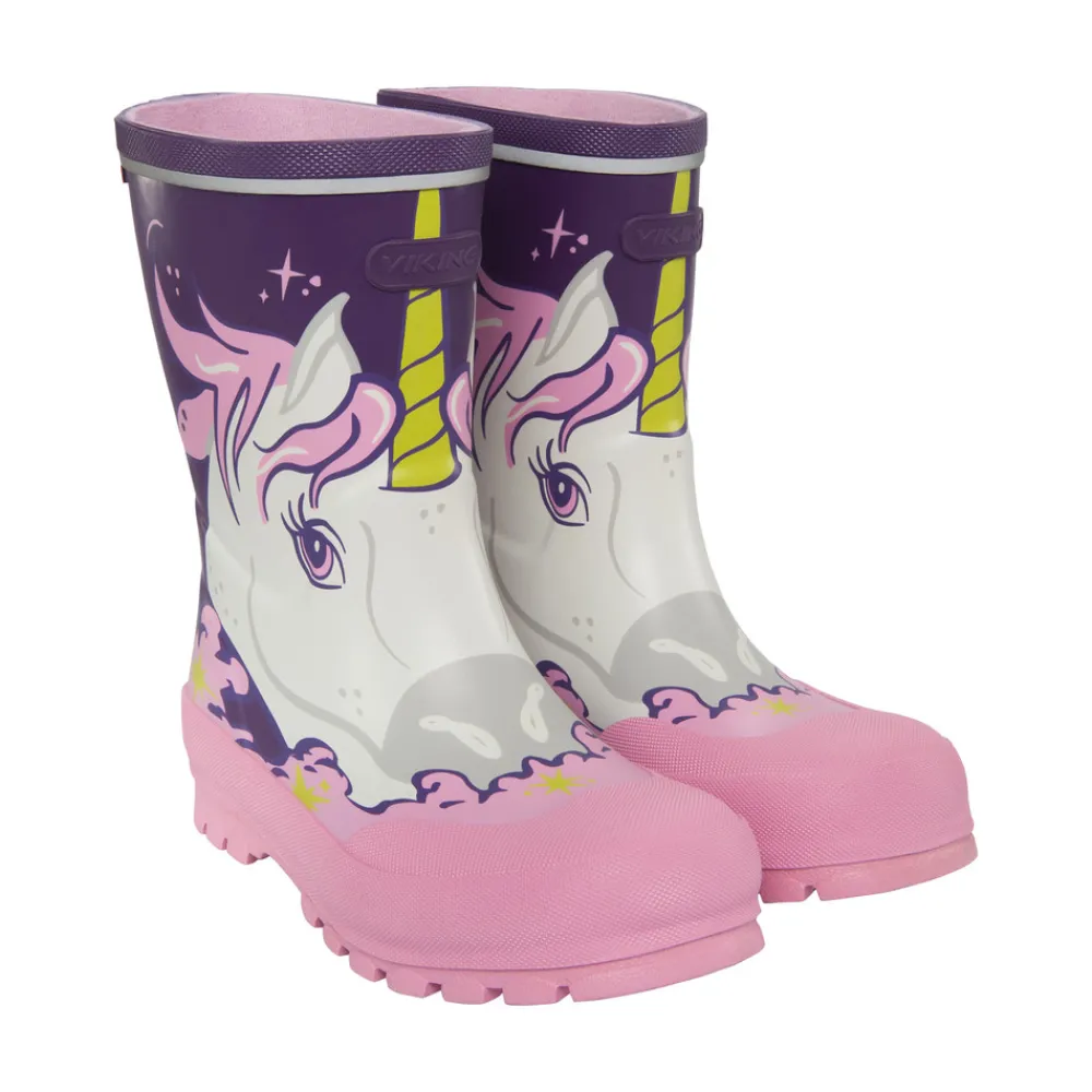 En behagelige læst giver glade fødder – hvilket giver glade børn! Jolly Print har en normal pasform, og hele støvlen er fremstillet af naturgummi, som både er elastisk, slidstærkt og vandtæt. Den har forstærket snude, og indlægssålen kan tages ud, så den nemt kan tørre. Indvendigt finder man et hurtigttørrende syntetisk tekstilfor. Alle gummistøvler fra Viking er håndlavet i naturgummi. Støvlen er desuden fri for PVC og vegansk.