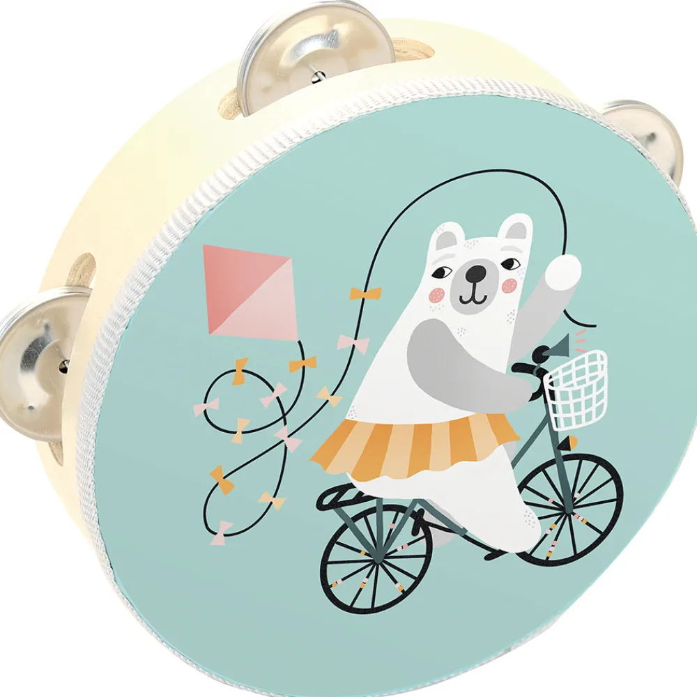 Musiksæt til børn. Indeholder 1 tamburin, 1 xylofon, 1 kølle, 1 triangel og 2 kastagnetter.