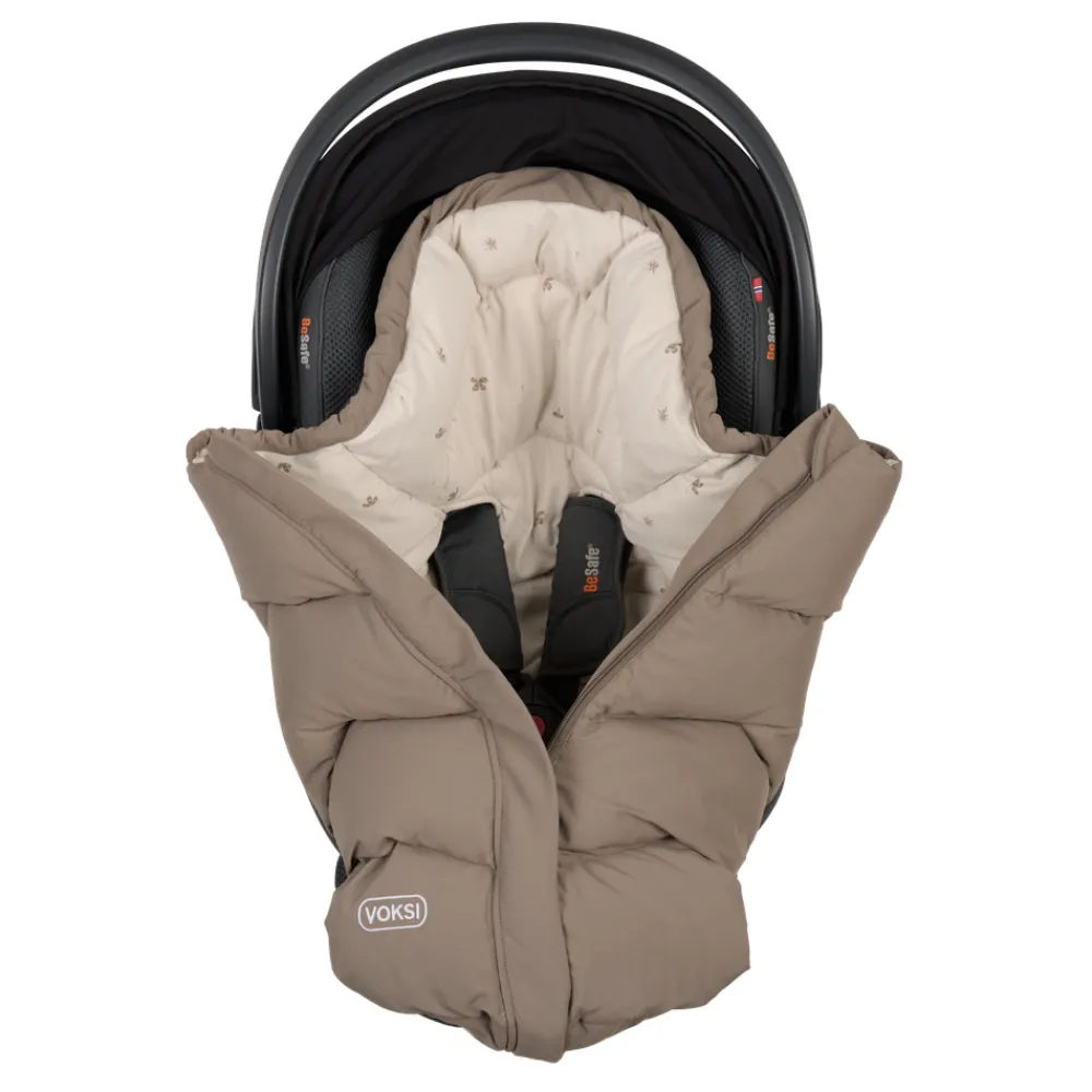 Voksi-produkter, der er kompatible med autostole, er blevet kollisionstestet i kombination med BeSafe-autostole i den anbefalede bagudvendte position. En god installation af barnet er afgørende, hvor der lægges ekstra vægt på spændingen af selen, hvilket kræver mere kræfter end uden sovepose.