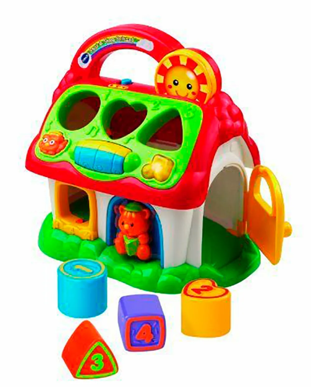 VTech Putteskole hjælper barnet med at lære om former, farver og tal. Designet som en skole, lærer dette interaktive legetøj barnet at sortere de forskelligformede klodser. Alder 12+mdr.