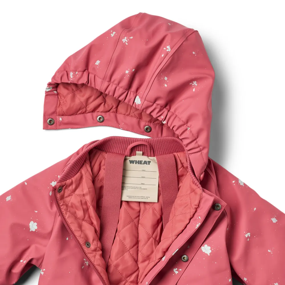 Denne termo regndragt med print er åndbar, vandtæt og har let polstring, hvilket gør den perfekt til det evigt skiftende vejr. Wheat’s populære termo regndragt er en sand vinder i dit barns garderobe. Dragten er lige, hvad dit barn har brug for som overgangsdragt, når sæsonen skifter. Dragten er i åndbart polyurethan (PU) materiale og er unik, da den holder dit barn både tørt og varmt på en og samme tid.