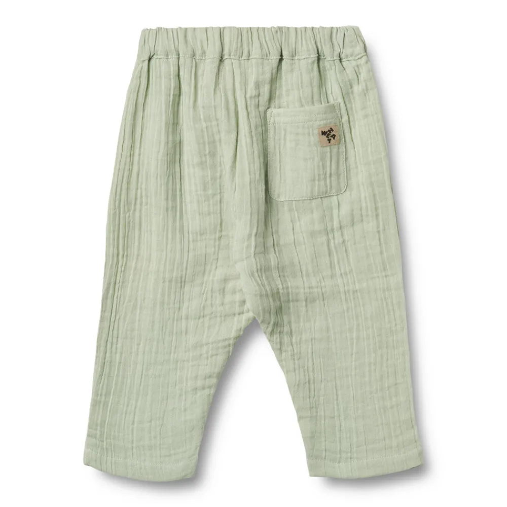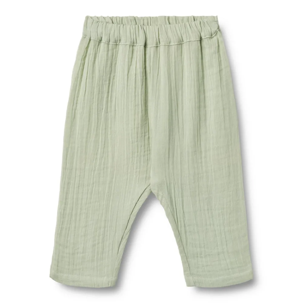 Bløde bukser i økologisk bomuldsgaze til babyer.