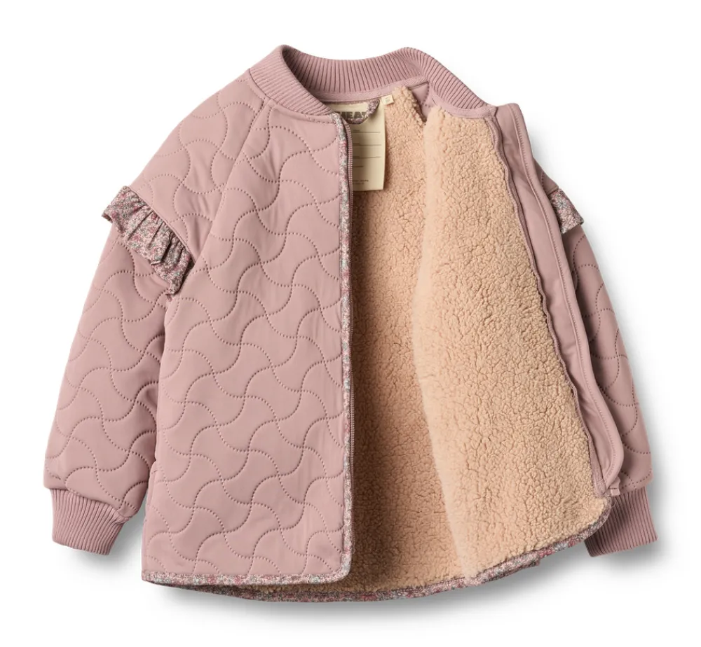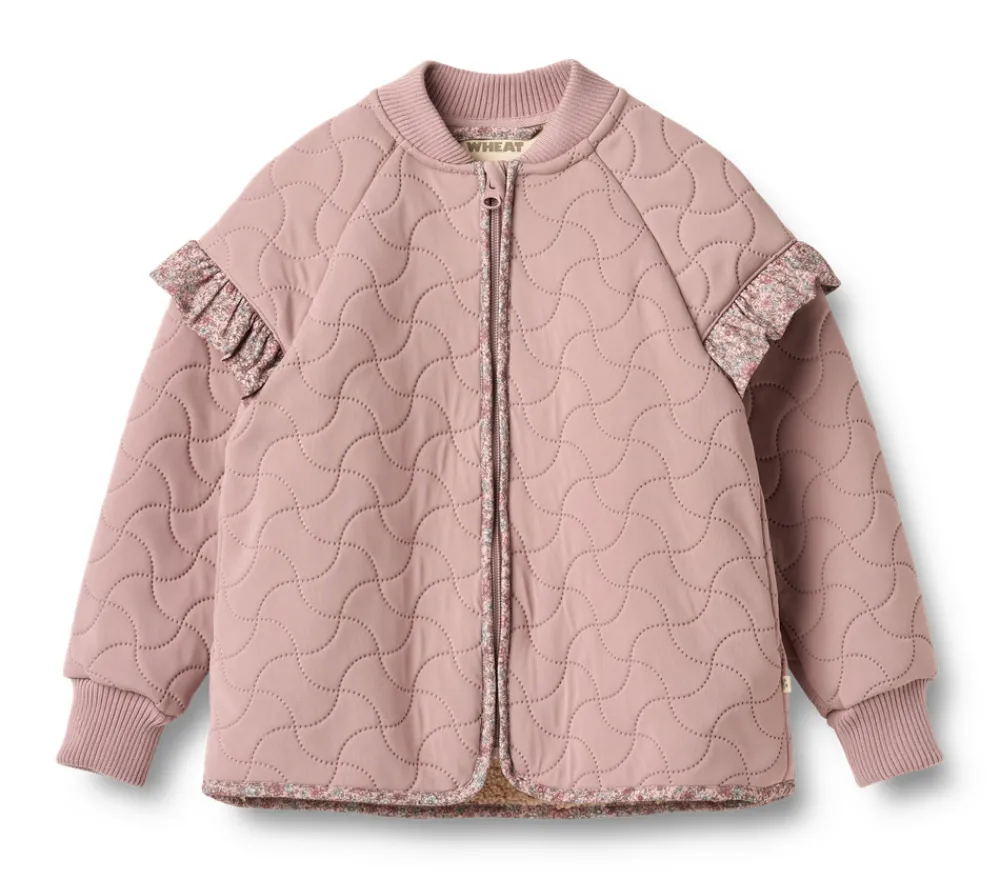 Ny printet termojakke med flæser til børn. Wheat’s populære termotøj er en sand hverdagsfavorit, da det bløde og lette materiale gør det behageligt at bevæge sig rundt i. Termojakken er produceret i 100% genanvendt materiale og kan bruges både indendørs, såvel som praktisk overgangstøj.