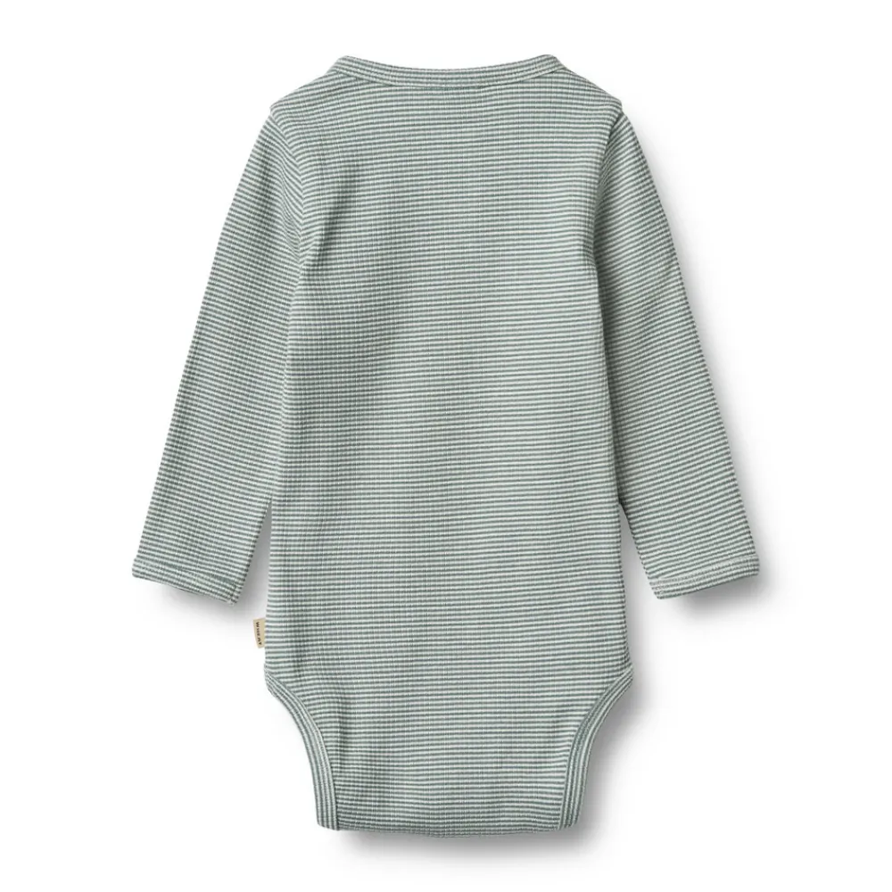 Body med lange ærmer med striber i blød økologisk bomuld til din baby.