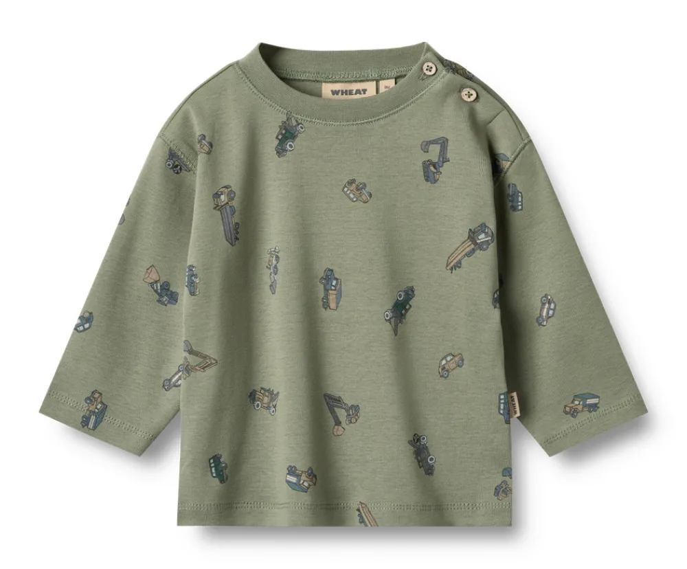Langærmet T-shirt med print i blødt økologisk bomuld til din baby. Wheat’s T-shirts er en sand klassiker i dit barns garderobe, da T-shirtsene er bløde og behagelige at have på. De kan nemt styles med et par bukser samt en strik udover alt afhængigt af vejr og anledning.