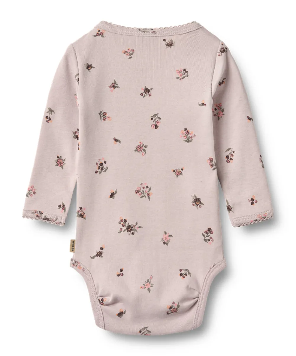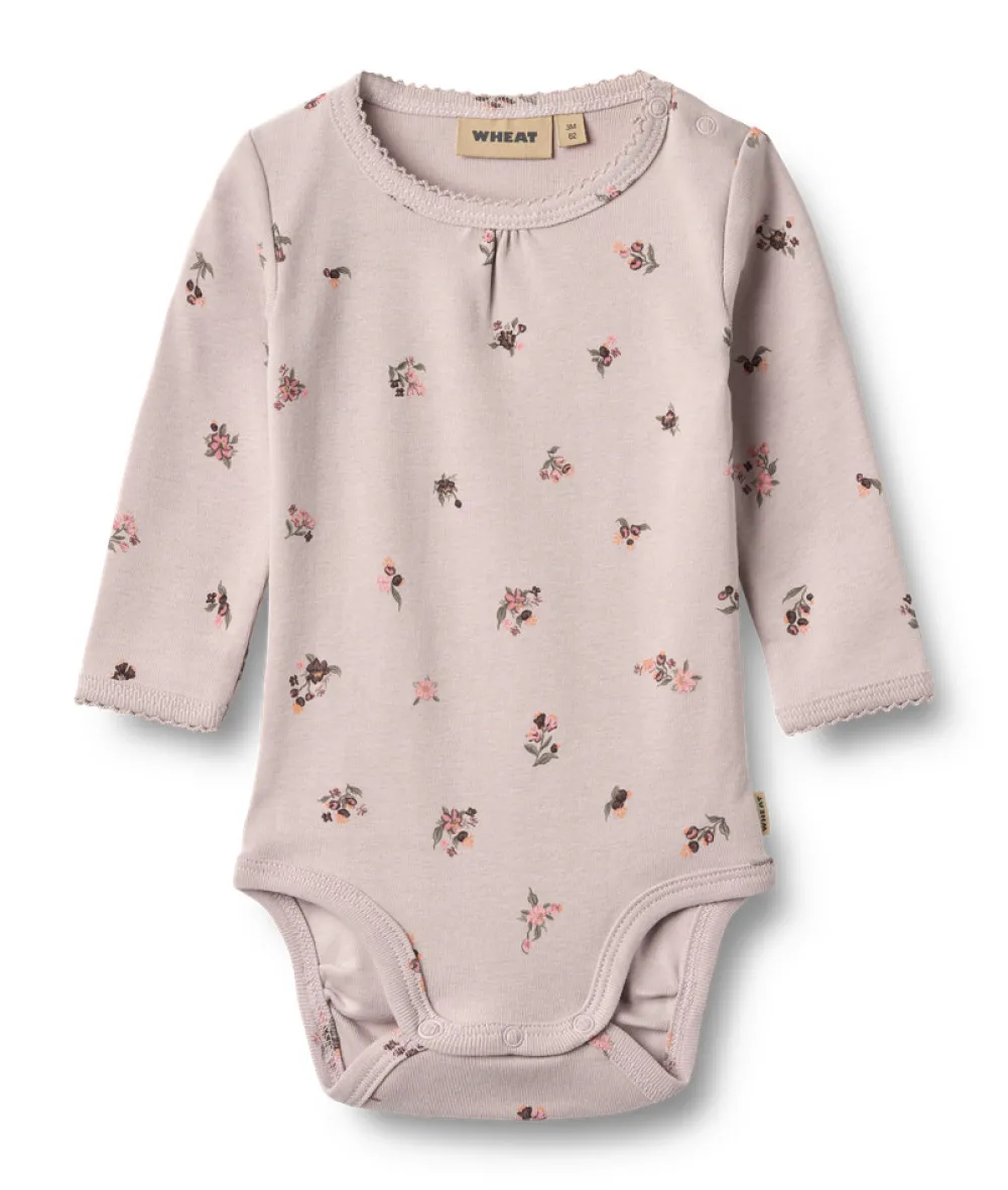 Langærmet body med print i blødt økologisk bomuld til din baby. Wheats basis body er en sand klassiker i garderoben, når det kommer til småbørn. Denne body har trykknapper på den ene skulder samt i bunden for bedre komfort, når du skal klæde dit barn på. Brug bodyen som den inderste del i ethvert outfit, da den er blød at have tæt på huden.
