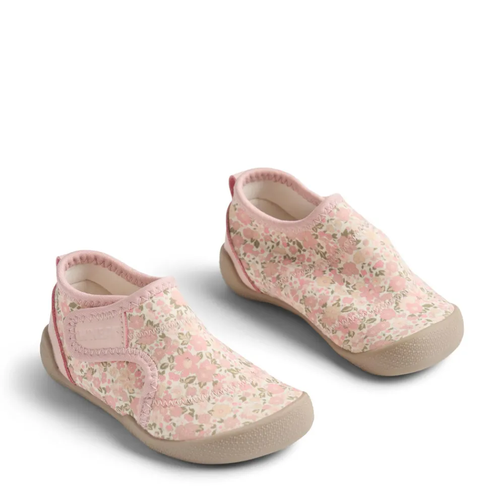 Denne strandsko er lavet i vores velkendte neopren med print, der matcher badetøjskollektion. Neoprenskoen er perfekt til en dag på stranden, ved poolen eller i svømmehallen og er behagelig for dit barn at have på og bevæge sig rundt i.