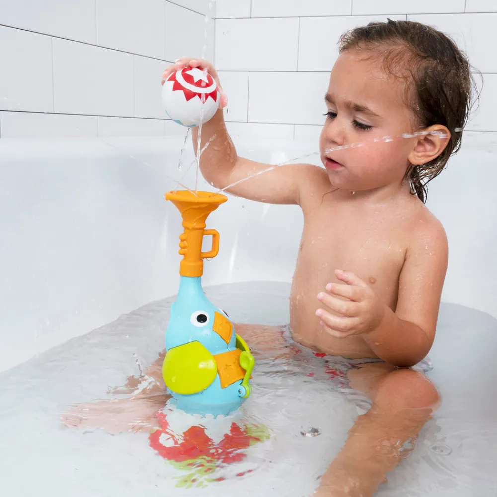 Trompeten giver 3 stråler og bolden snurrer rundt ovenpå trompeten.
