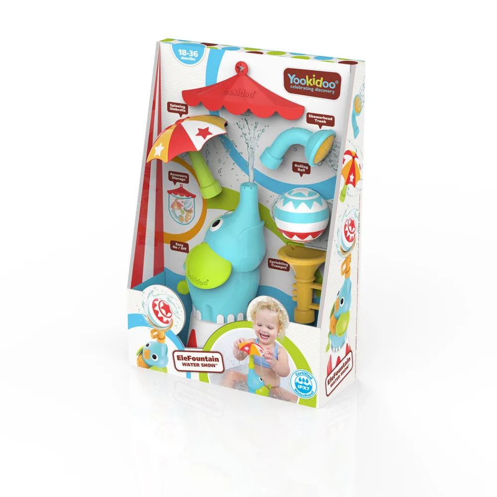 Denne elefantfontæne er med 4 stk tilbehør med hver sin vandeffekt.