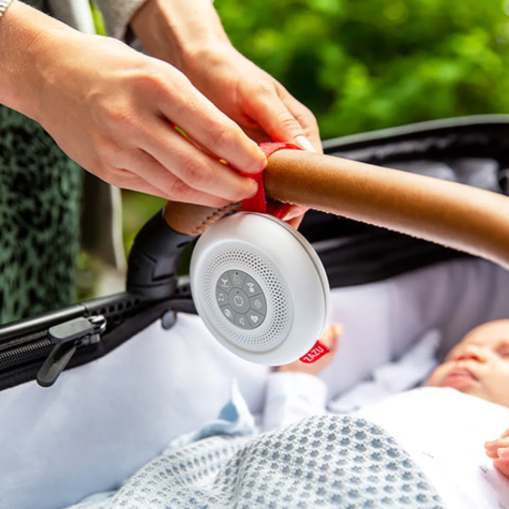 Denne bærbare højtaler hjælper din lille med at slappe af og falde bedre til ro og i søvn, uanset hvor du er – hjemme eller på farten. Suzy kan nemlig hvæse (SHH…SHHH): en metode hvor forskning viser, at nyfødte babyer, der hører hvid støj, falder lettere i søvn end babyer, der ikke hører hvid støj. Men ikke nok med det, Suzy tilbyder i alt 6 forskellige lyde. Vælg mellem lyde, du kender fra livmoderen, såsom fløjten, hjerteslag eller hvid støj eller afslappende lyde, såsom vuggeviser, havlyde eller loungemusik. Små babyer har ikke brug for stilhed. Efter at have tilbragt 9 måneder i livmoderen, hvor lyden af blodgennemstrømning og hjerteslag kan være højere end en støvsuger, vil babyer falde til ro og sove bedre med lyd.