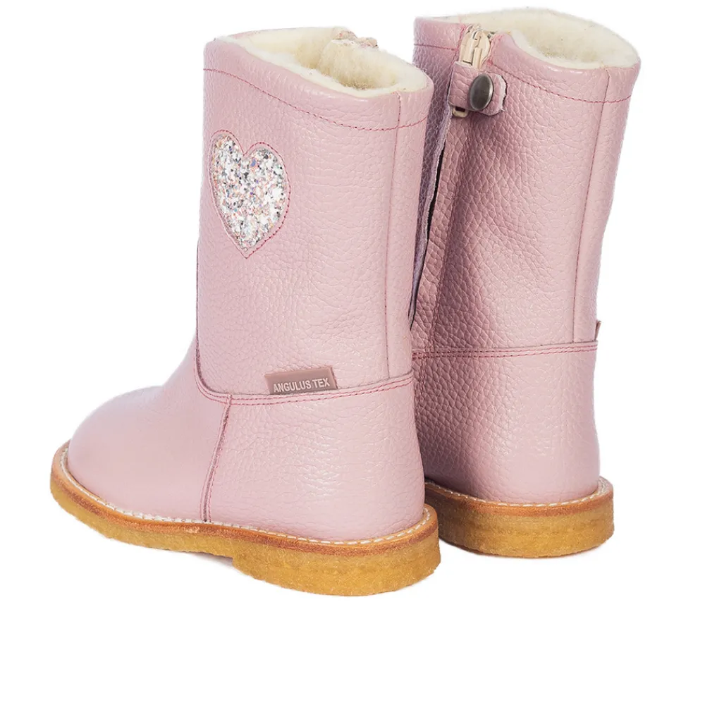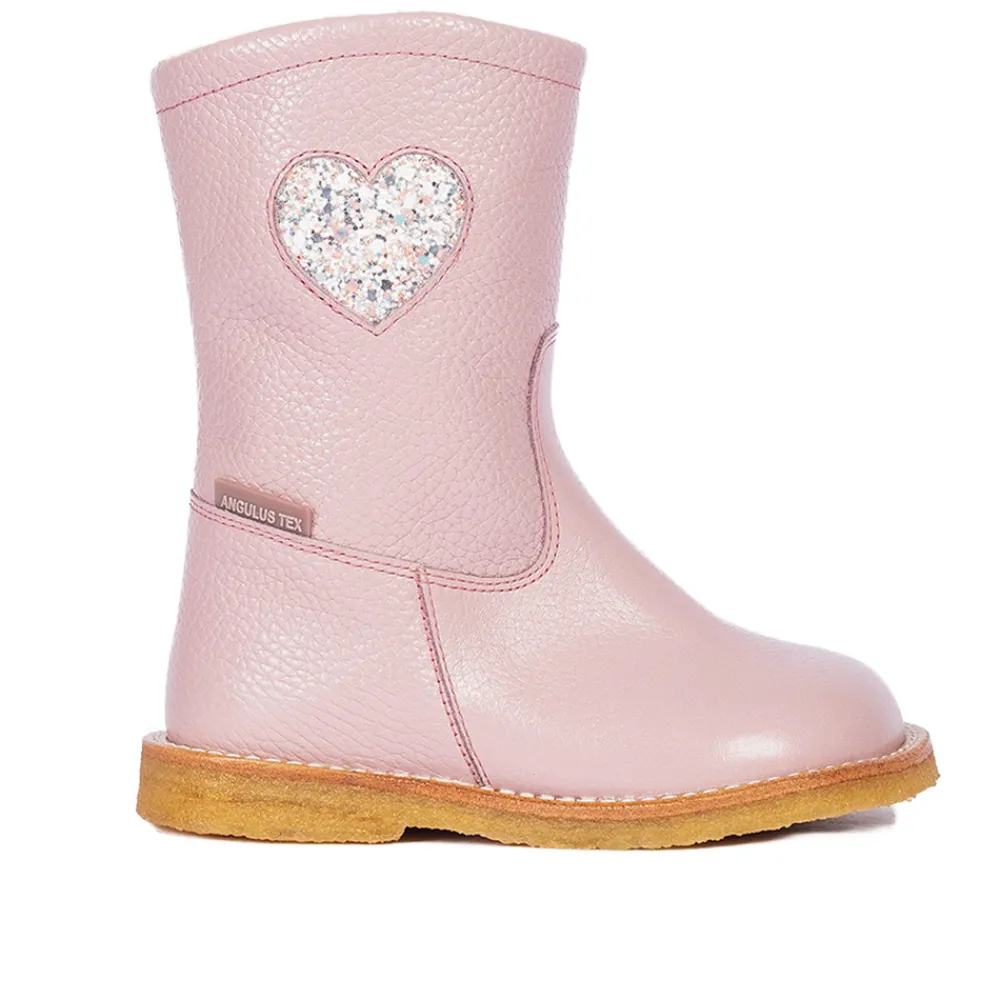 Vandafvisende TEX-støvle i læder med funklende glitterhjerte.