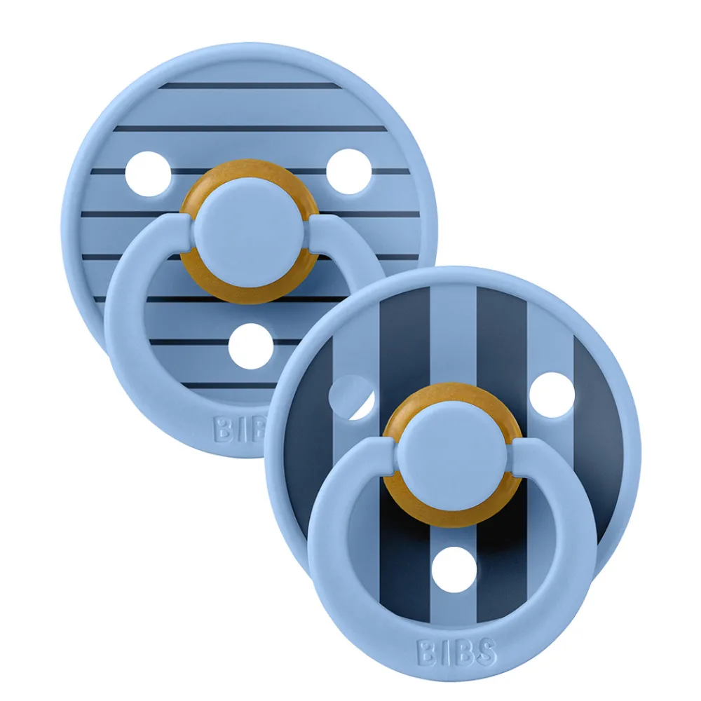 BIBS Colour er den originale BIBS-sut og har været på markedet i over 40 år. Den har det karakteristiske runde BIBS-skjold med tre udluftningshuller og en rund BIBS-indgraveret ring.