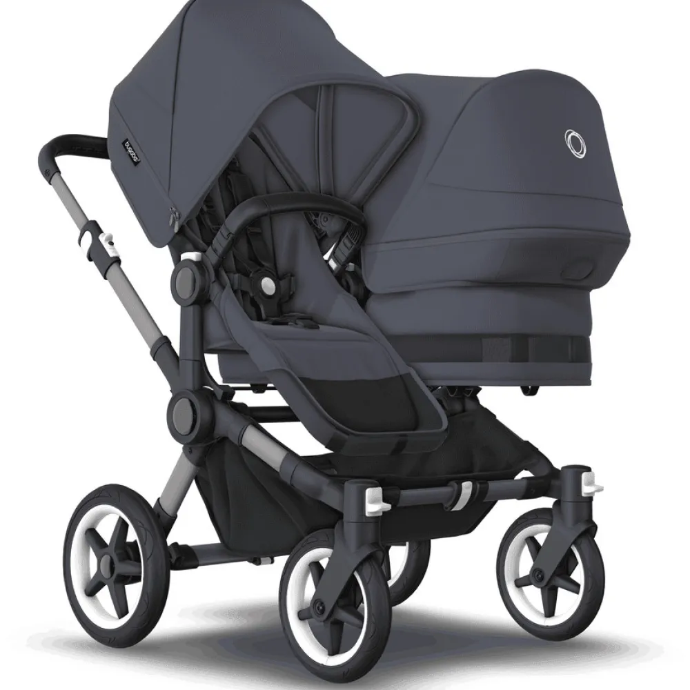 Med denne Bugaboo Donkey5 er der ekstra opbevaring lige ved siden af sædet, så man nemt kan komme til sin taske, og have varekurven fri til indkøb. Varekurven er god rummelig, har ekstra små lommer og er godkendt til 10 kg. Styret har teleskop styr, som nemt justeres i højden, og tilpasses “føreren” af vognen. Med de drejbare forhjul, er det en vogn som er let at køre med, og hvis turen går til mere ujævn terræn f.eks. skoven, er de lige til at låse. Med de skumfyldte hjul og gode affjedring, gør det turen behagelig og komfortabel for både barnet og forældrene. Der er mulighed for at tilkøbe adapter, så de fleste babyautostole nemt klikkes på stellet. Når det ekstra sæde anvendes kan den ekstra opbevaringskurv ikke bruges!