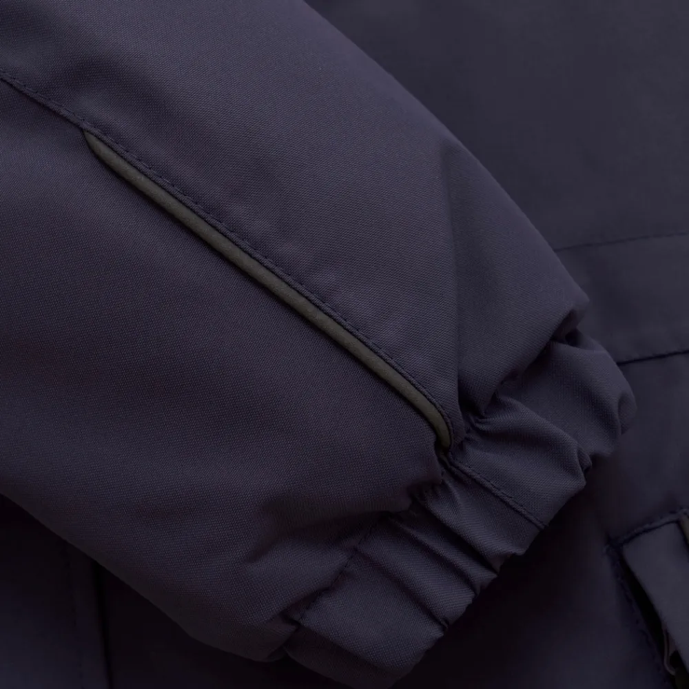 Refleksdetaljer på ryggen og ærmerne øger synligheden i mørke, og et indvendigt navneskilt gør det nemt at holde styr på tøjet. Flyverdragten er lavet af genanvendte materialer, imprægneret med miljøvenlige BIONIC FINISH® ECO, og GRS-certificeret med over 50 % genanvendt indhold.